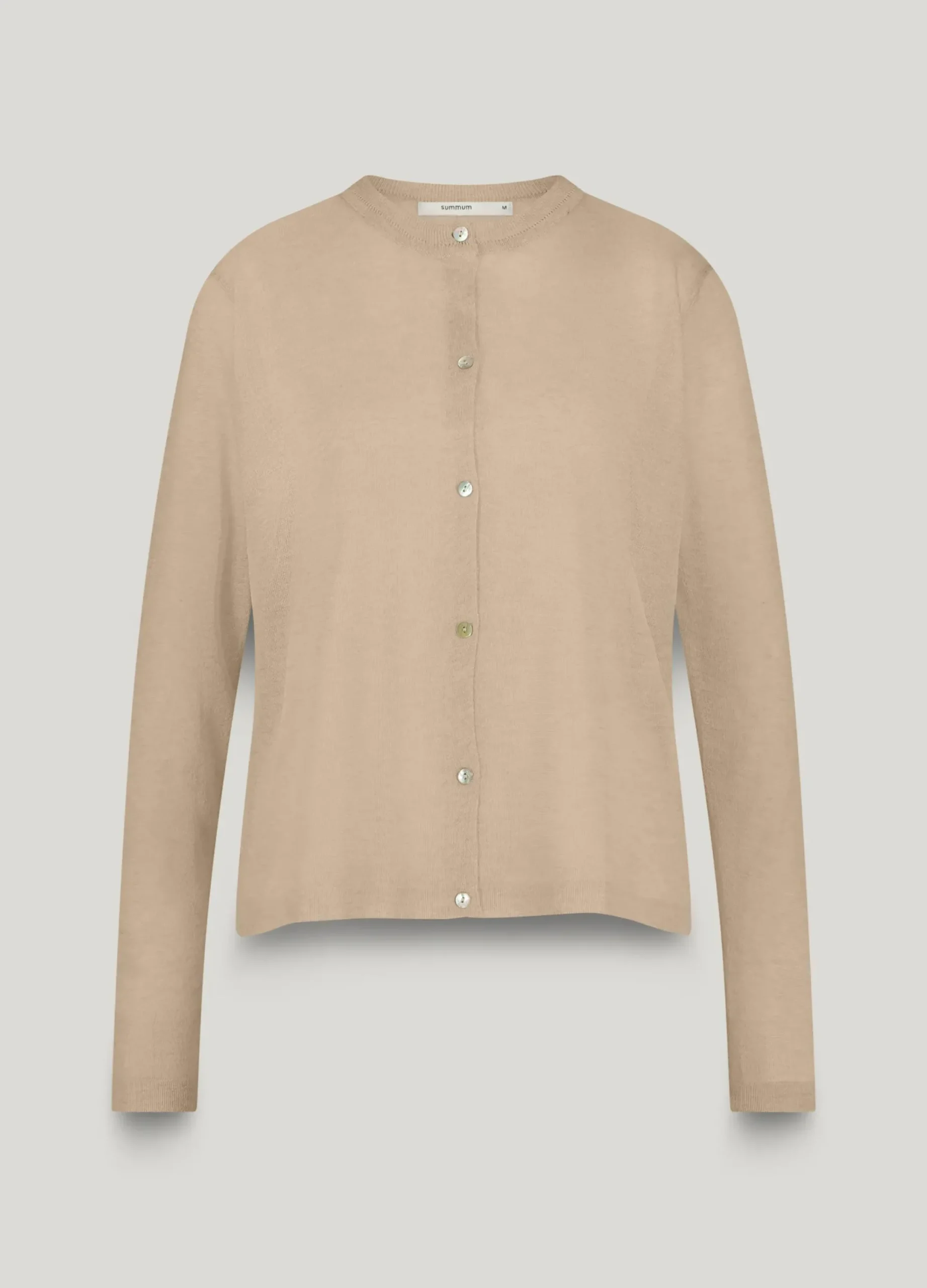 This delicate, short cardigan is made of a luxurious viscose blend with a subtle shimmer. The cardigan has a regular fit and is slightly transparent.
