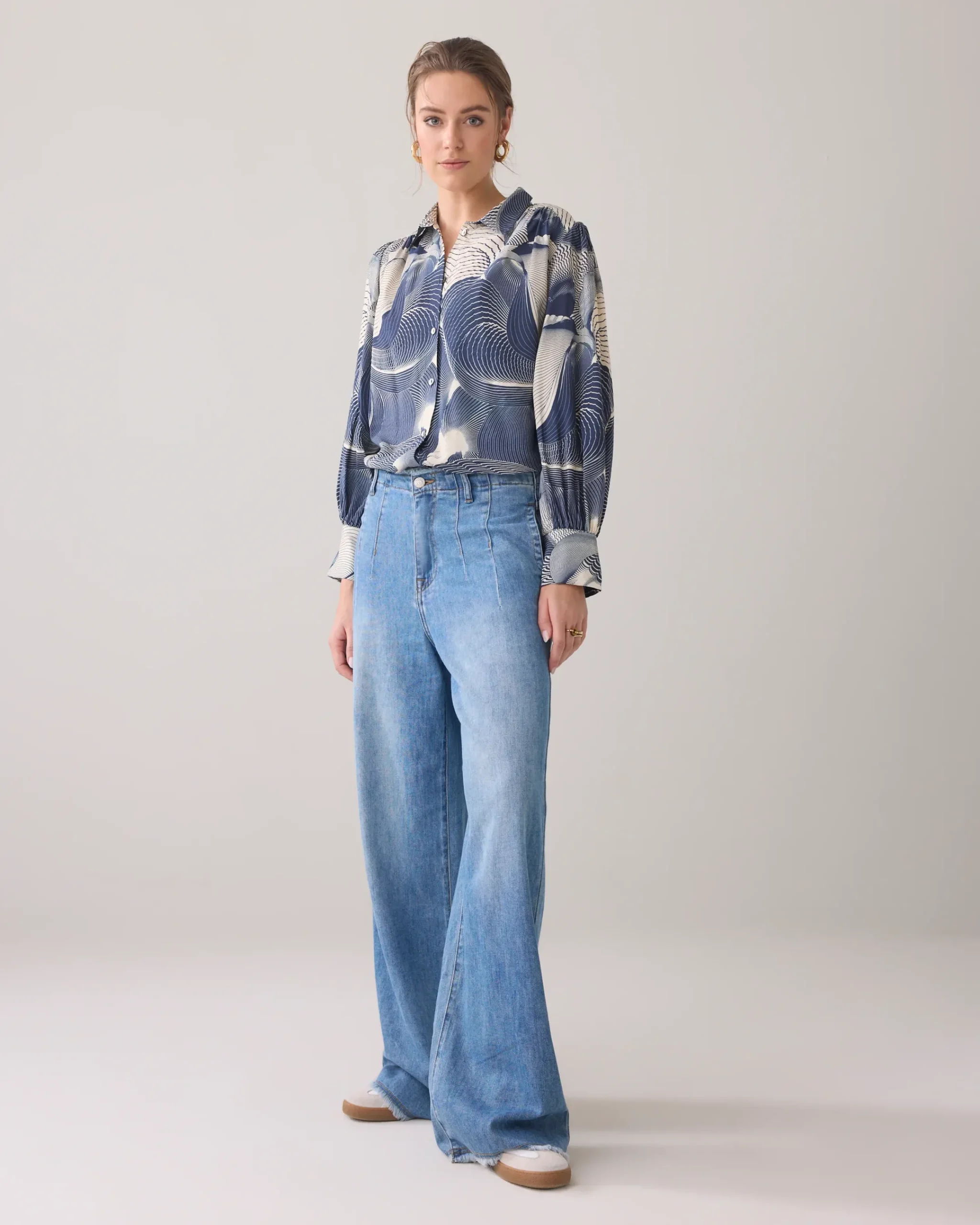 This shirt blouse has adjustable cuffs with buttons, which can be worn either narrow or wide. The back has an elegant box pleat and the blouse is made of a viscose blend that falls smoothly and moves beautifully with you.