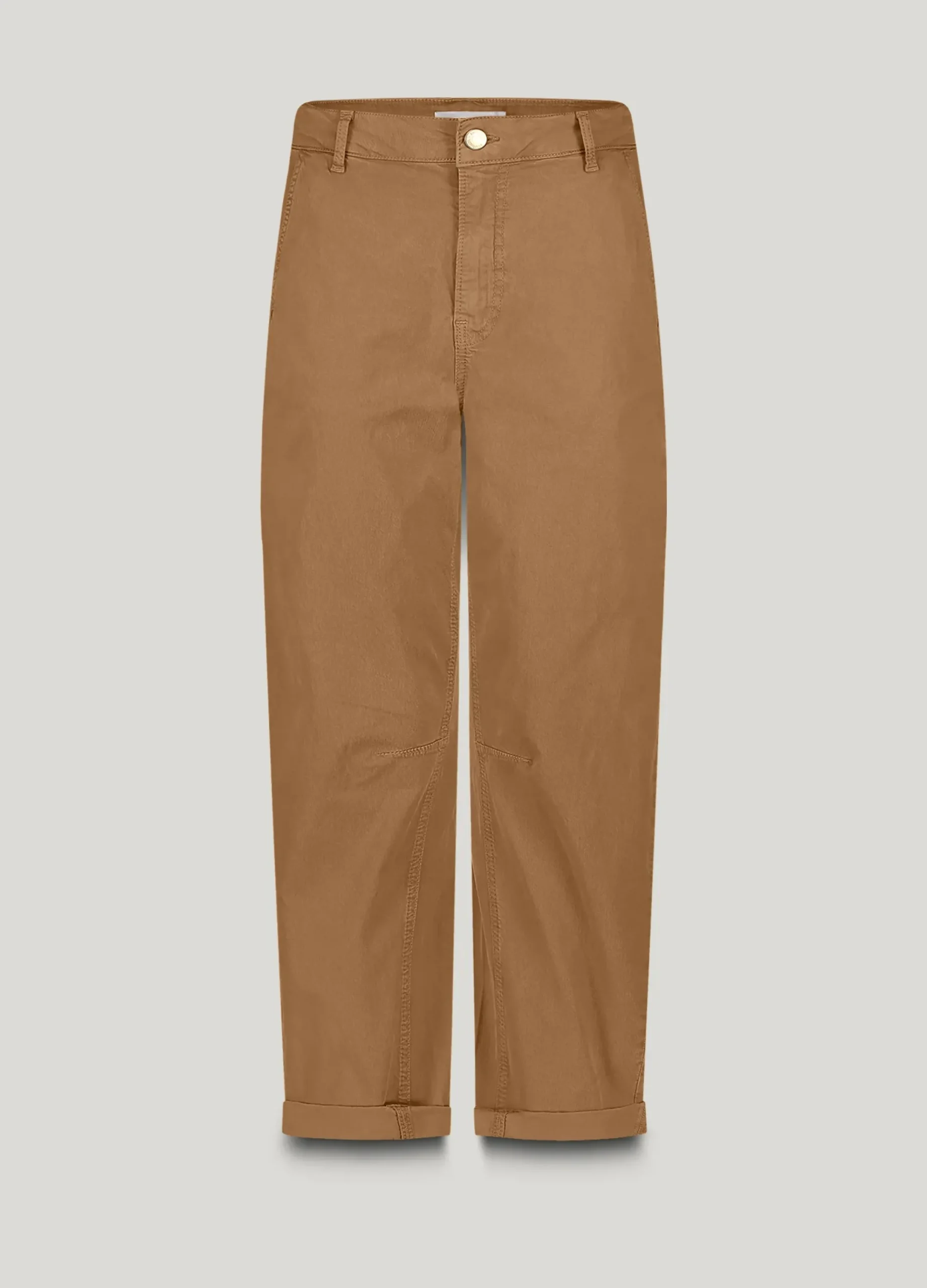 These cocoon-fit trousers are made of lyocell stretch with visible twill lines for a cool look. Seams at the knees add extra curve to the silhouette. The trousers have a mid-waist and fall at the shoe.