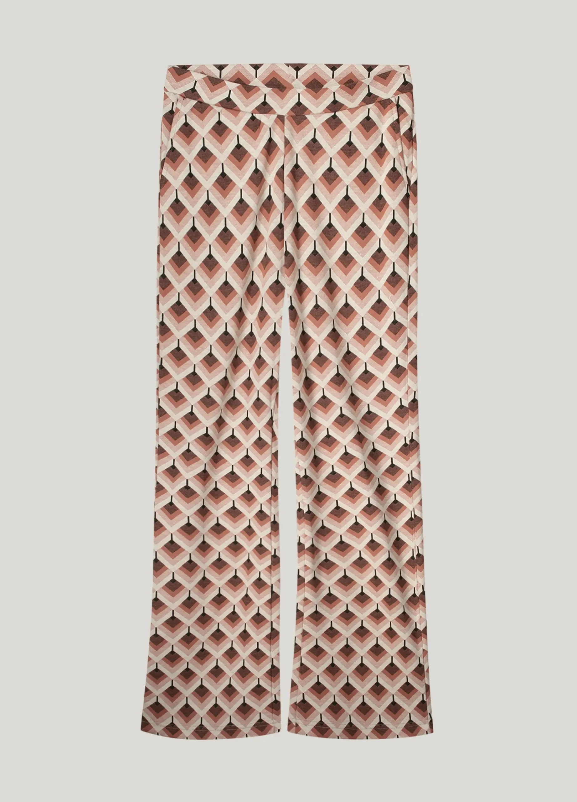 These flared trousers are made of sturdy jacquard jersey with a graphic retro design in the collection’s colours. The trousers have an elasticated waistband, side seam pockets and fake welt pockets.