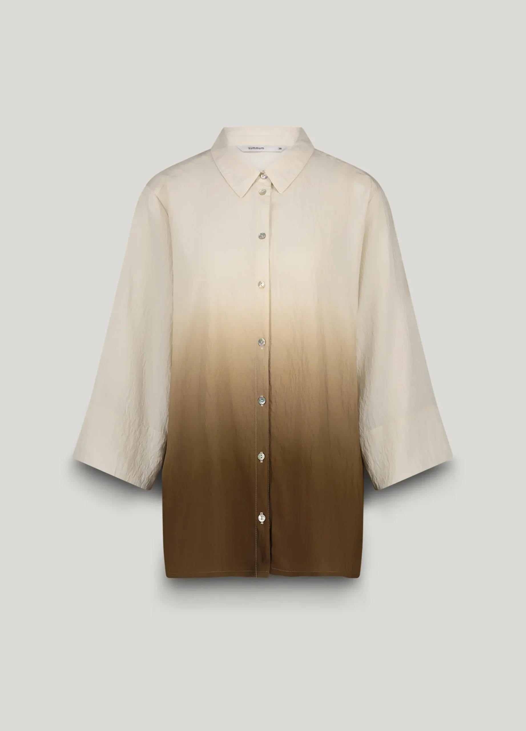 A flowy blouse with a soft dip-dye print. The blouse has a relaxed silhouette and a slightly longer back.