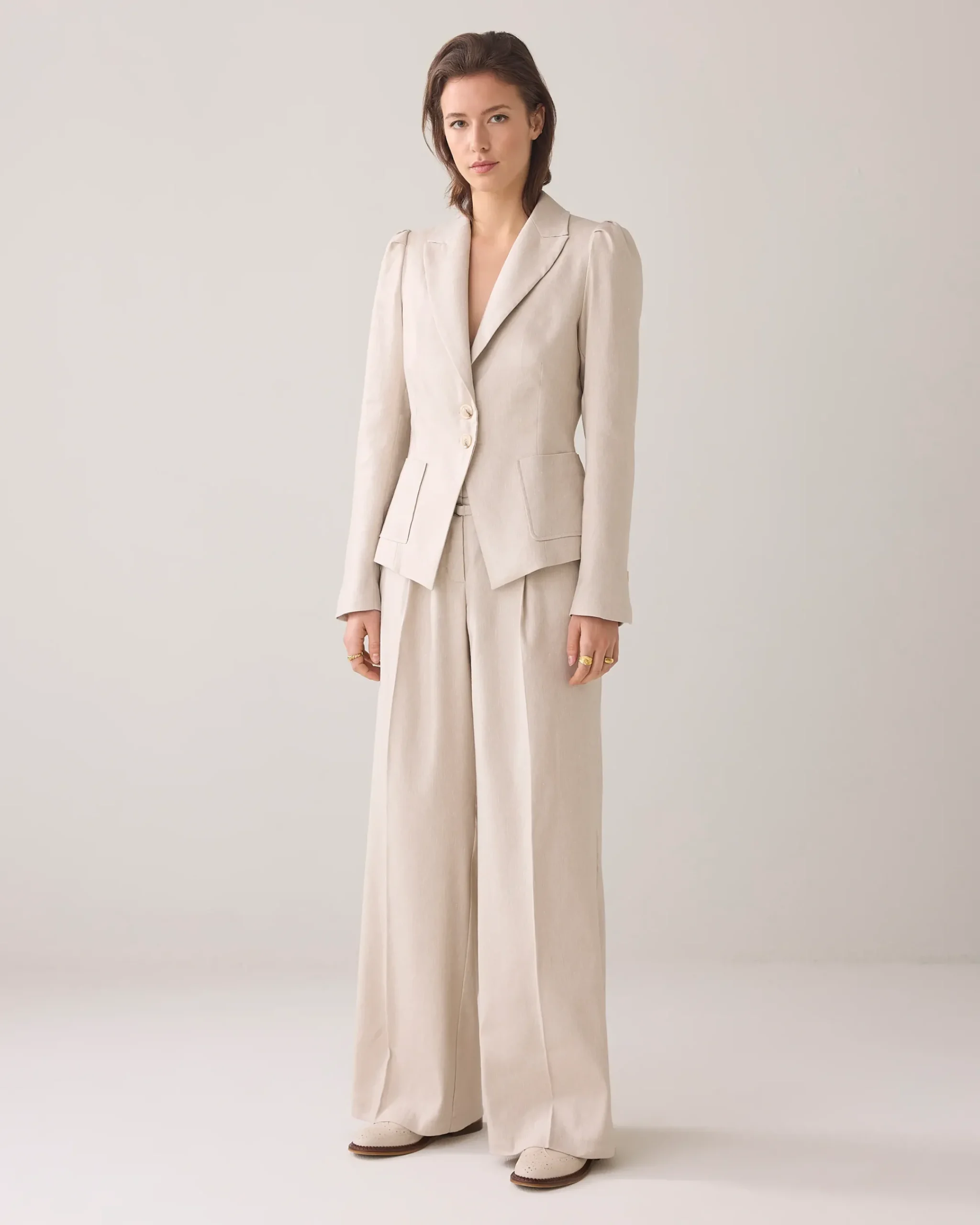Tailored blazer in a linen blend with patch pockets. Pleats at the shoulders for a subtle puff effect and a detail seam at the back ensure a good fit.