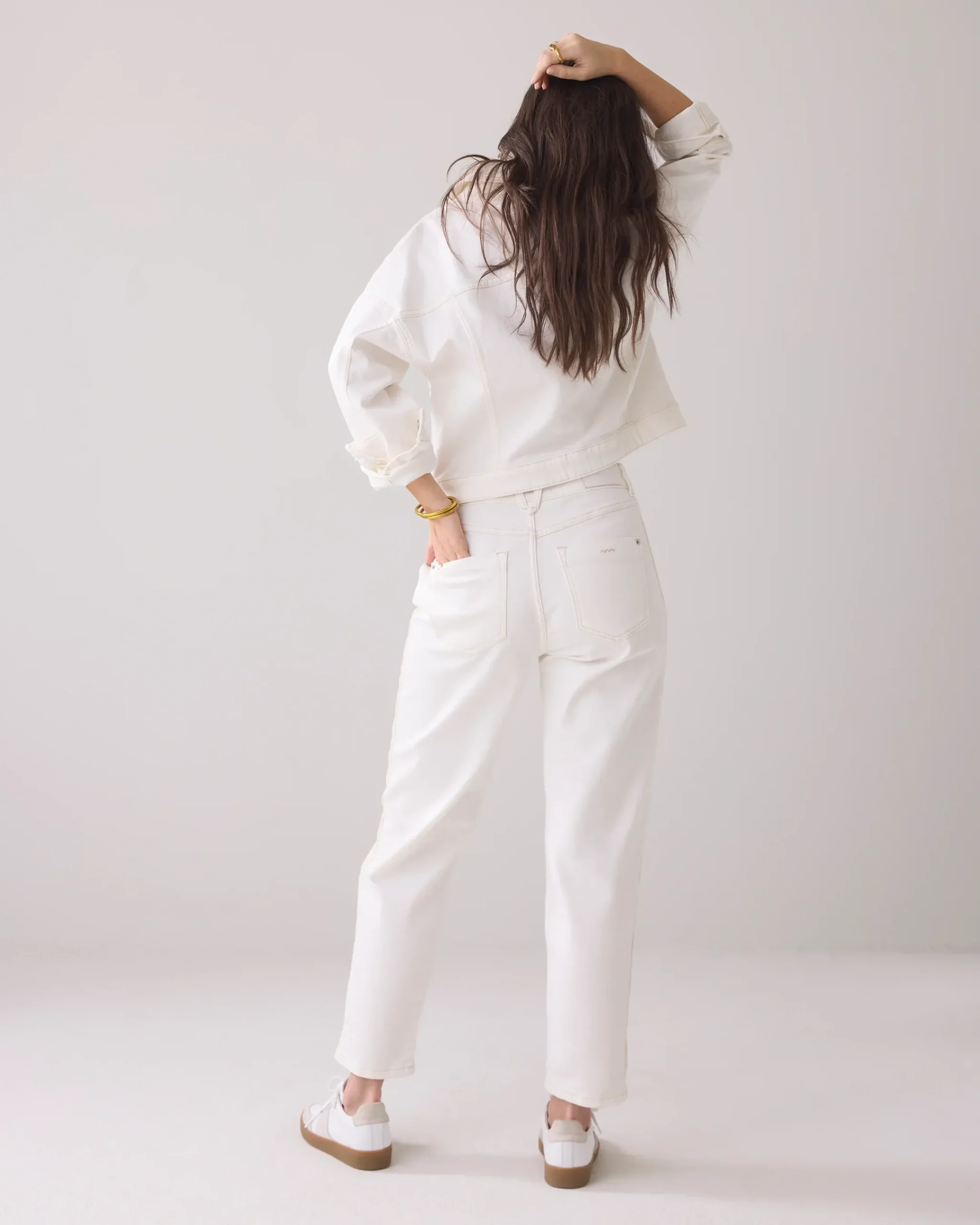 These tapered jeans in stretch denim have a high waist and relaxed fit on the hips. The trousers have rope details at the trouser pockets and are two-tone.