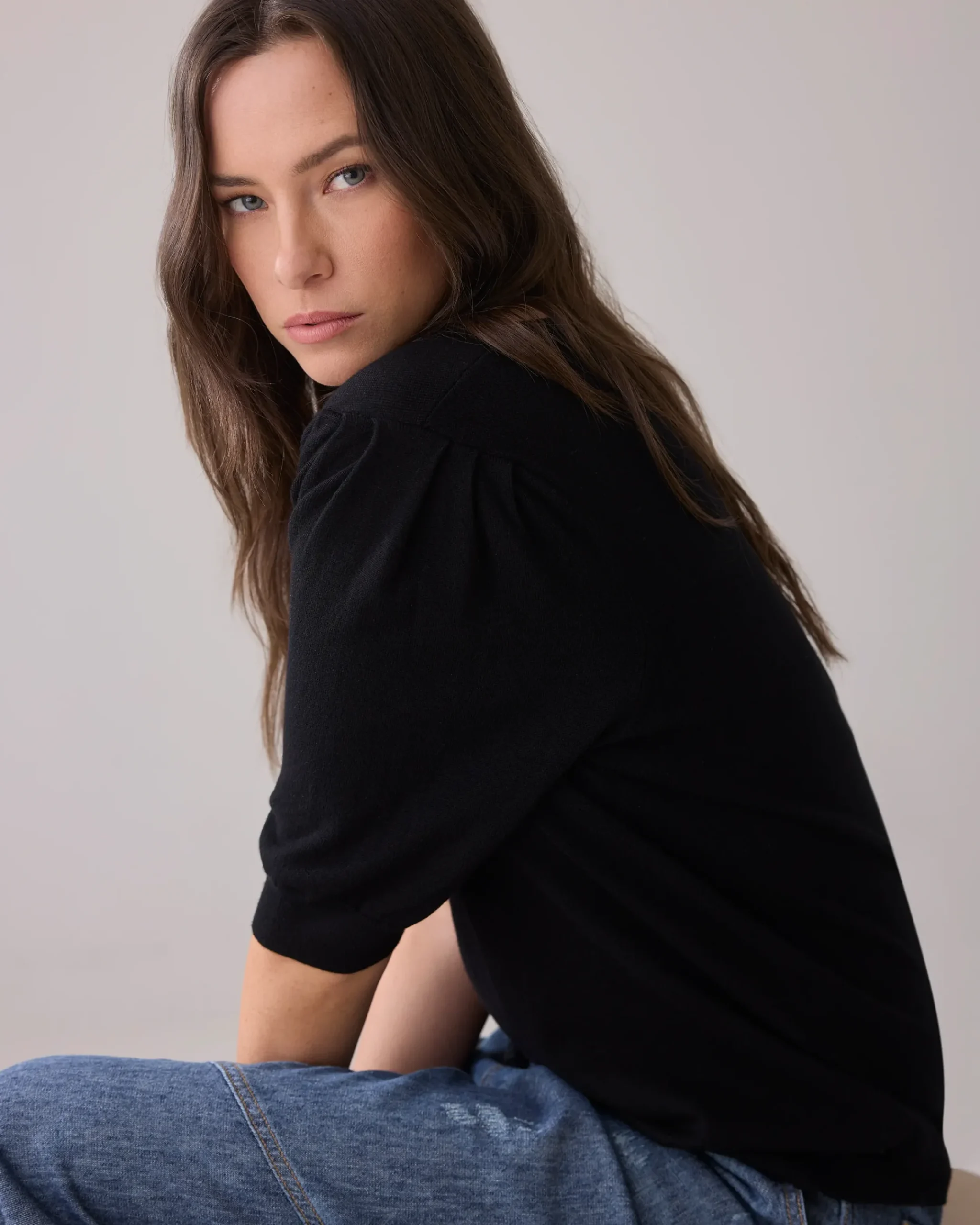 A basic that is actually too pretty to be called basic. Because the combination of soft viscose and light puff sleeves gives this ‘simple’ top a timeless and quirky look.