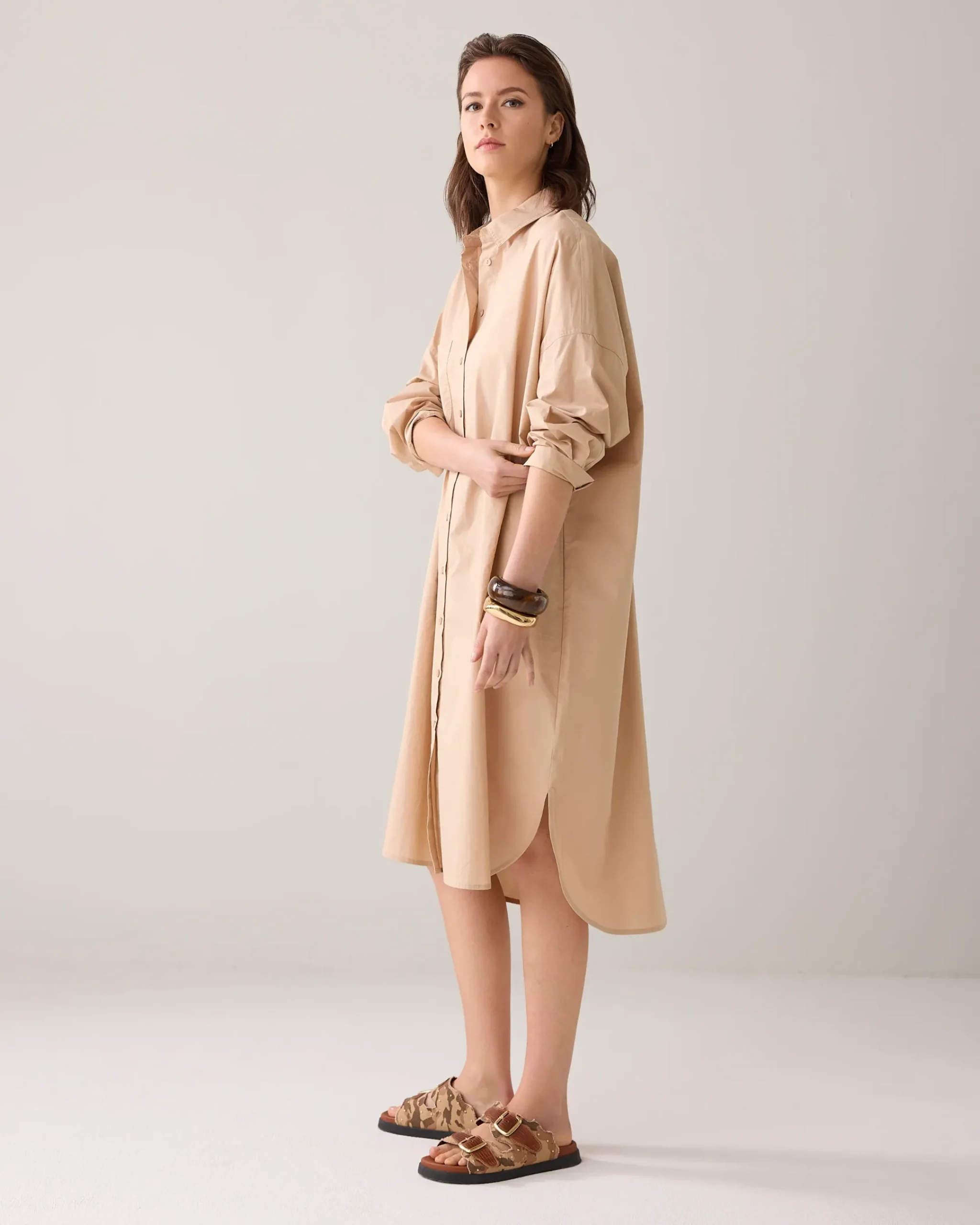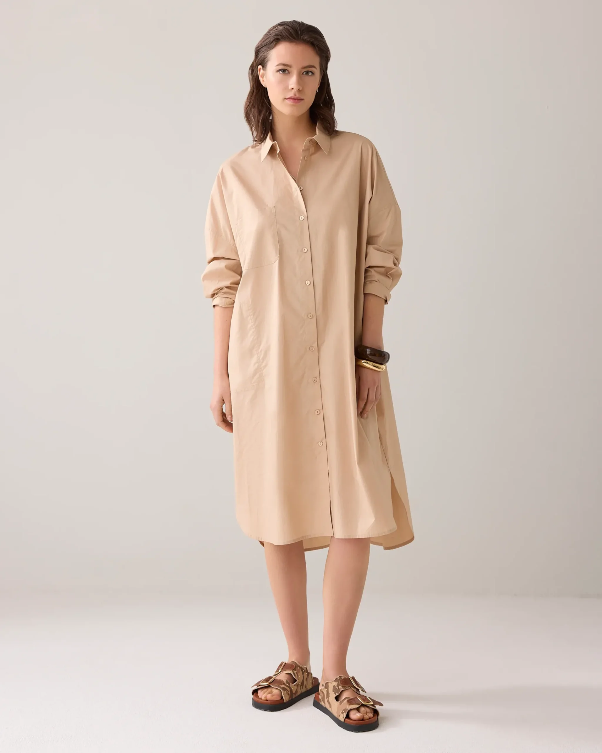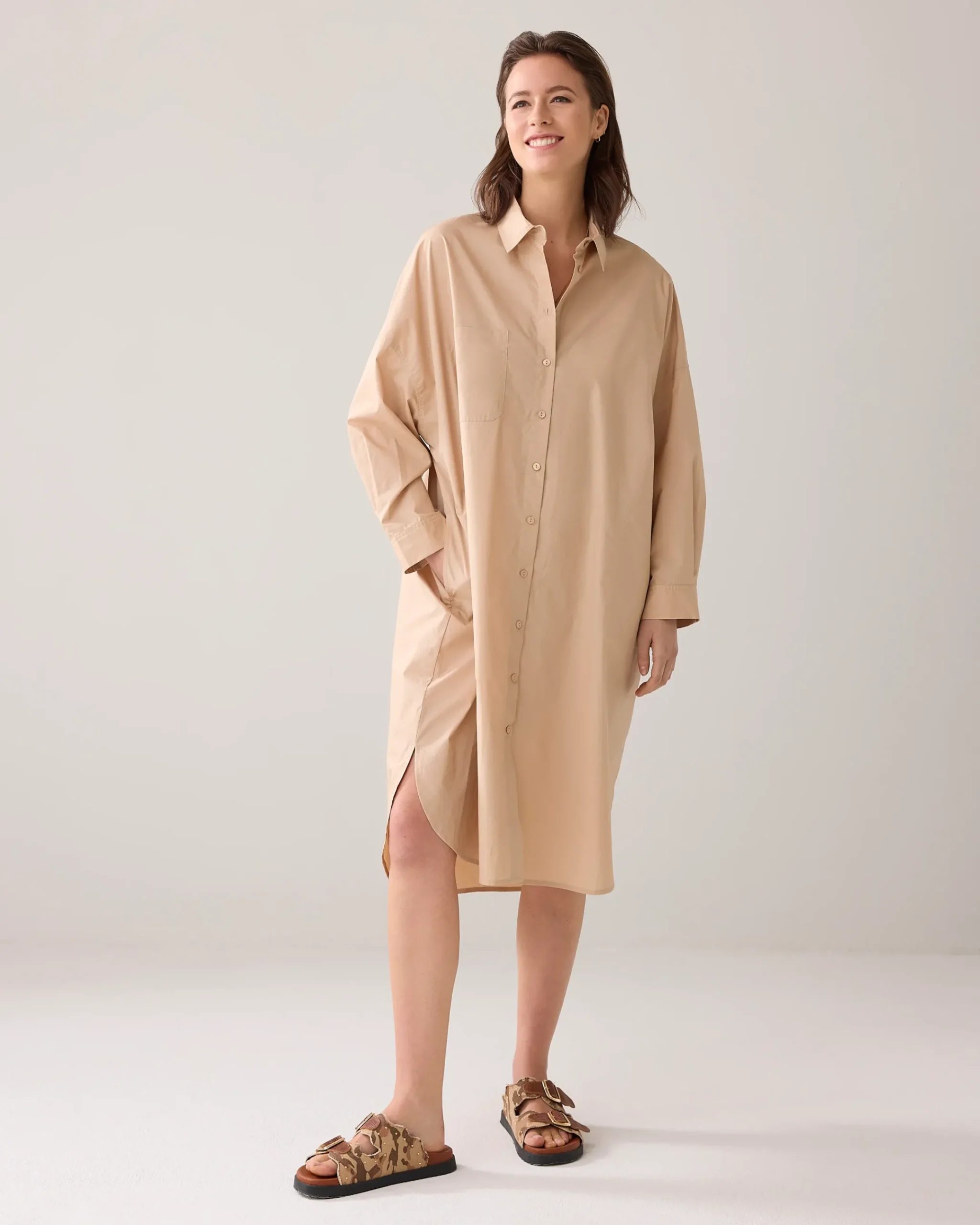 This oversized shirt dress in crispy cotton has a casual look with its patch breast pocket and slit pockets. The dress has a rounded hem and falls to the calf.