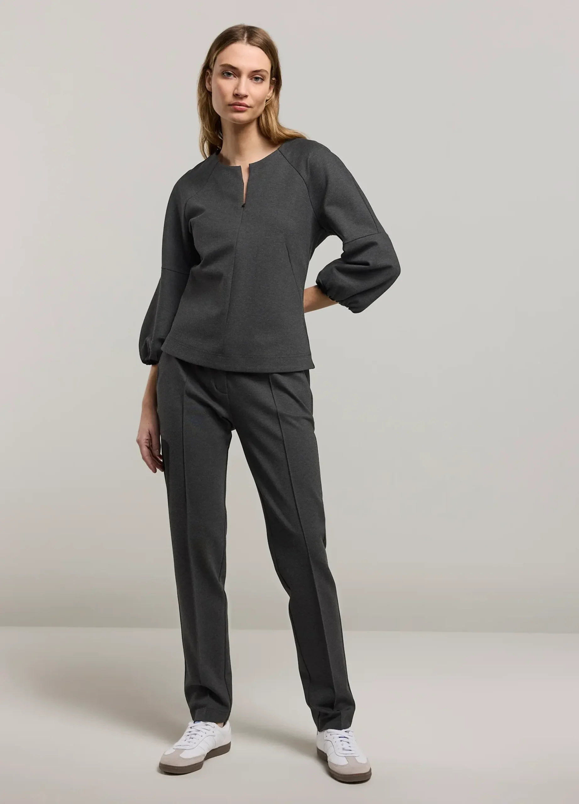 Fitted top with a round neckline and split with concealed zip. The raglan sleeves are flared at the bottom.