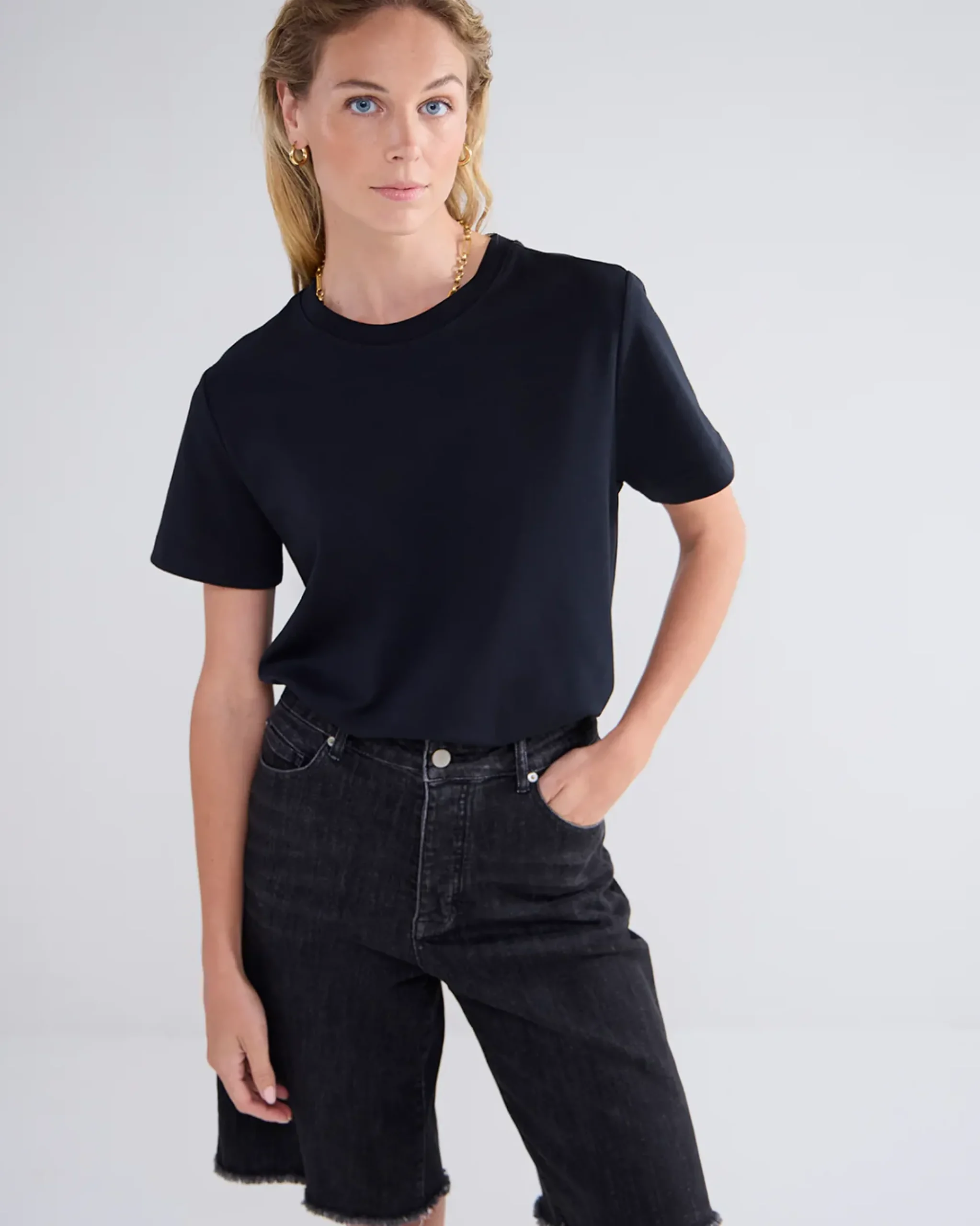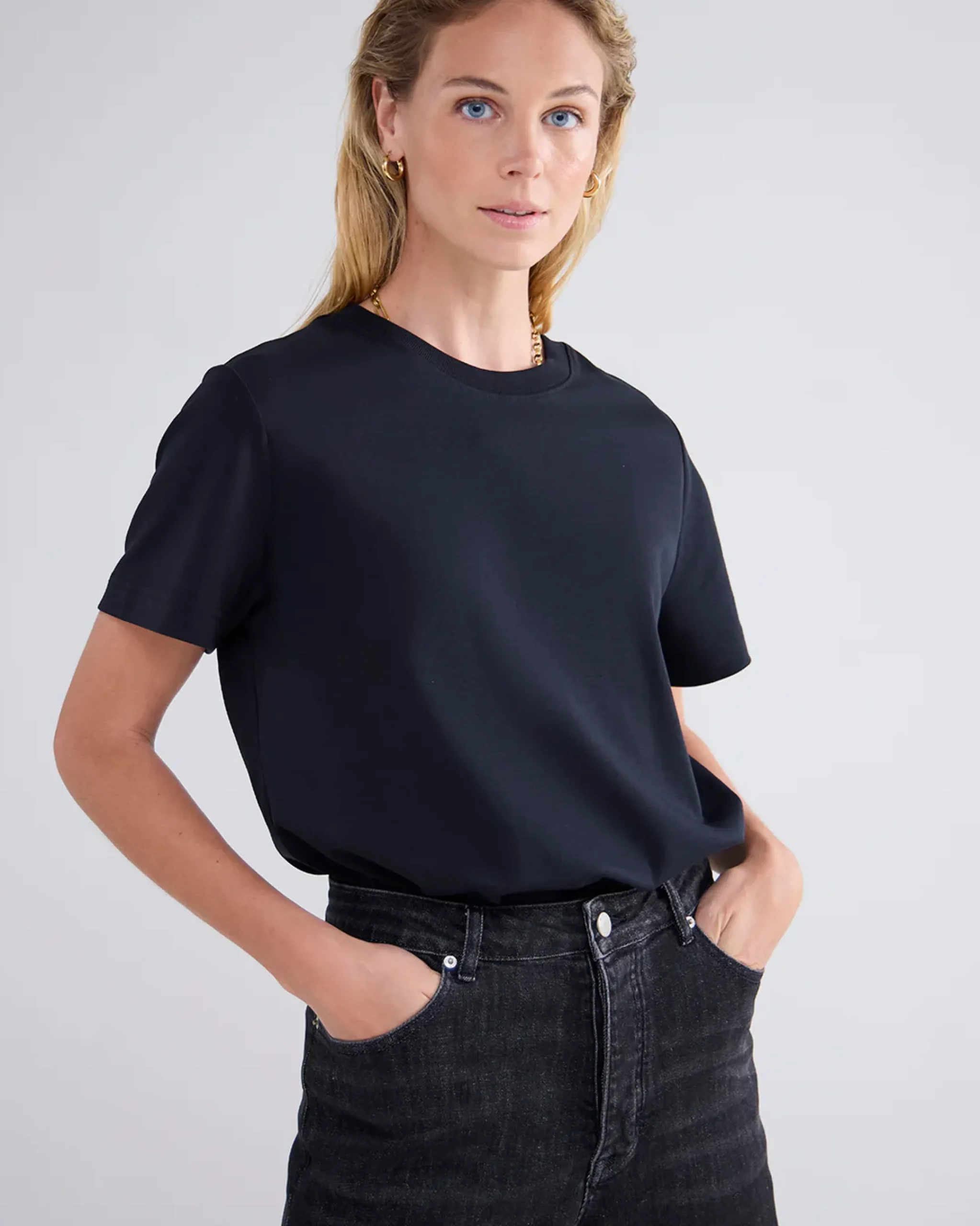 Short-sleeved, round-neck top made form a comfortable cotton jersey fabric.
