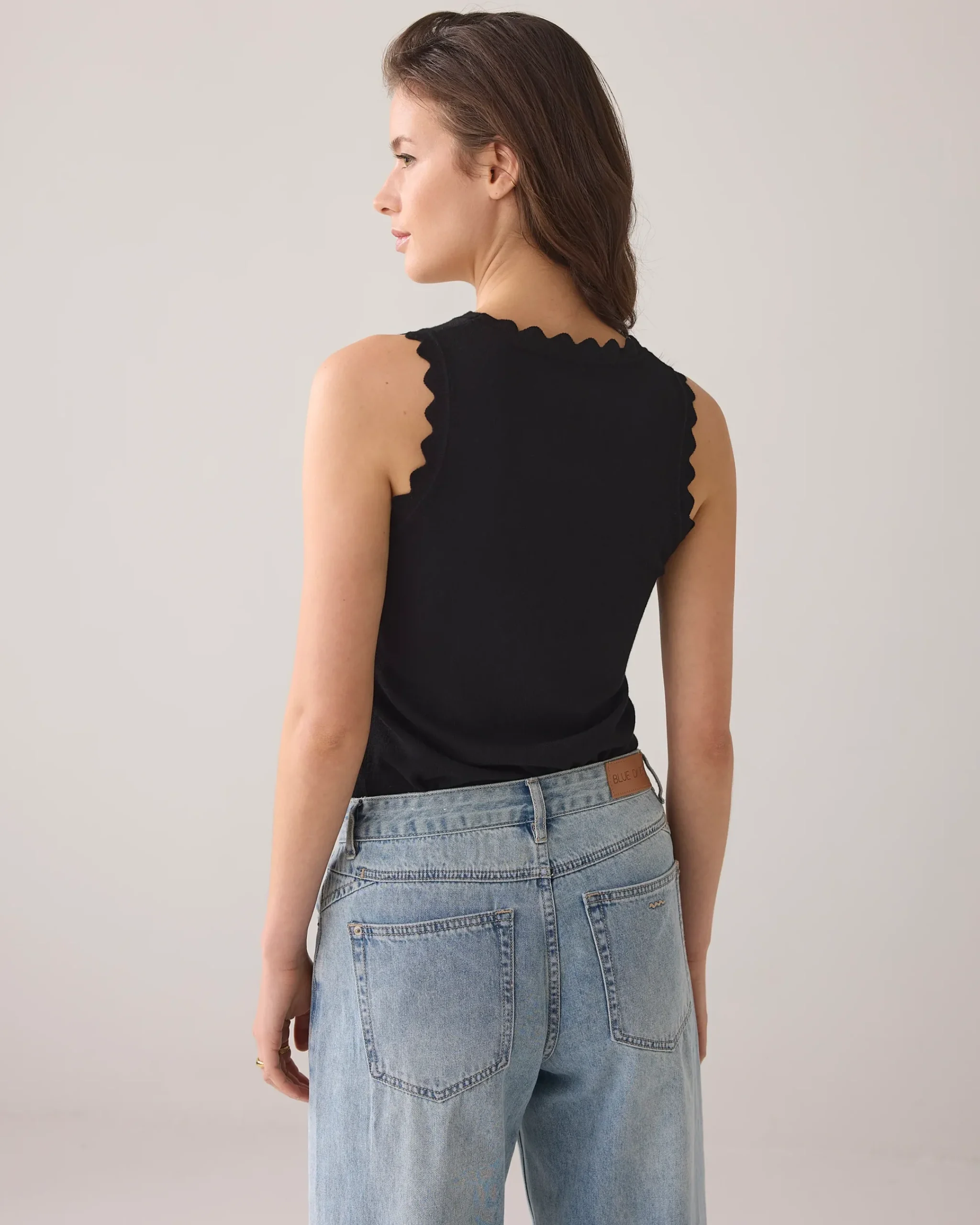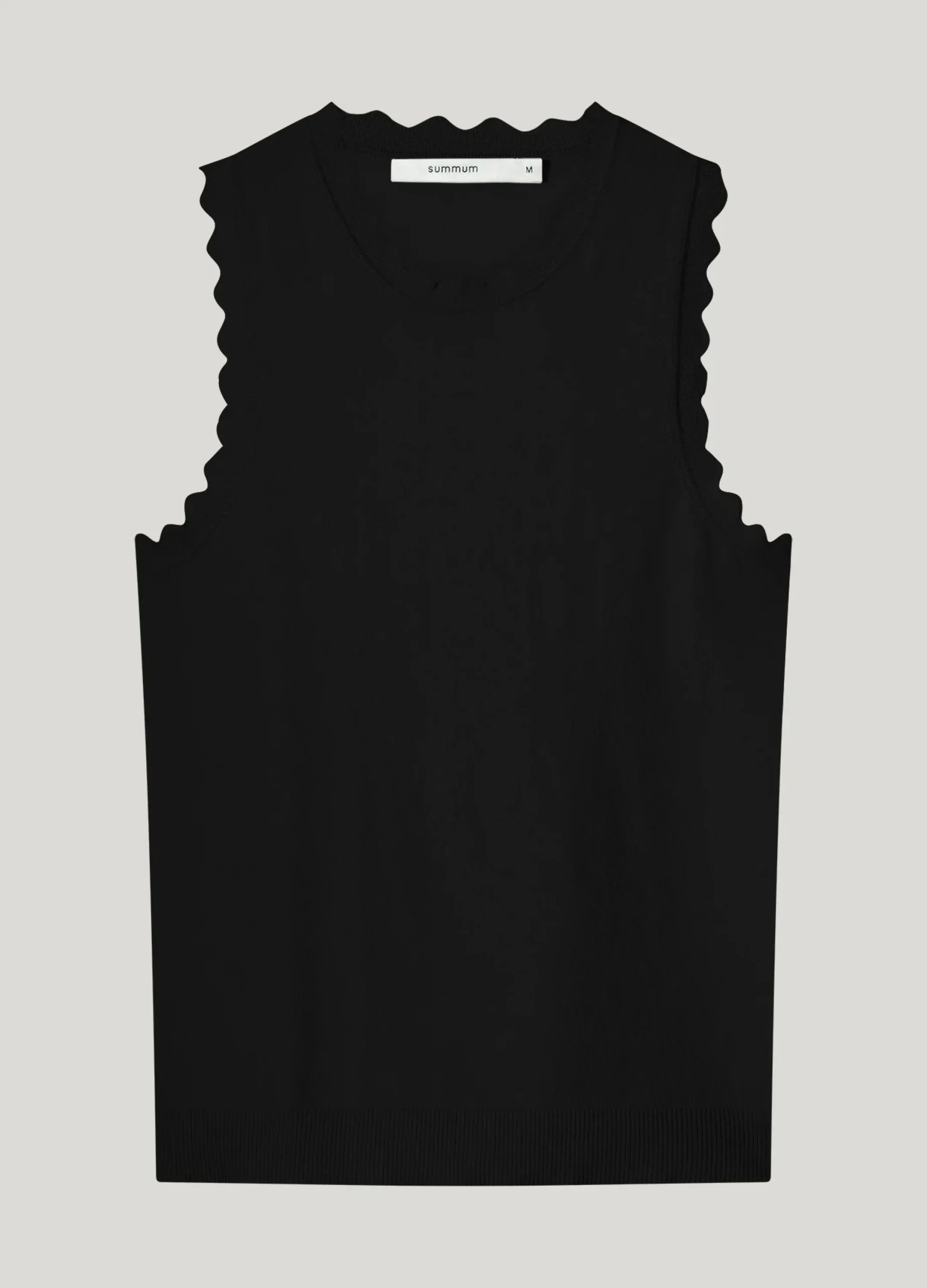 This fine-knit singlet has a straight fit and is made of extremely soft viscose polyamide yarn. The scalloped trim along the neckline and armholes adds a sophisticated touch to the design.