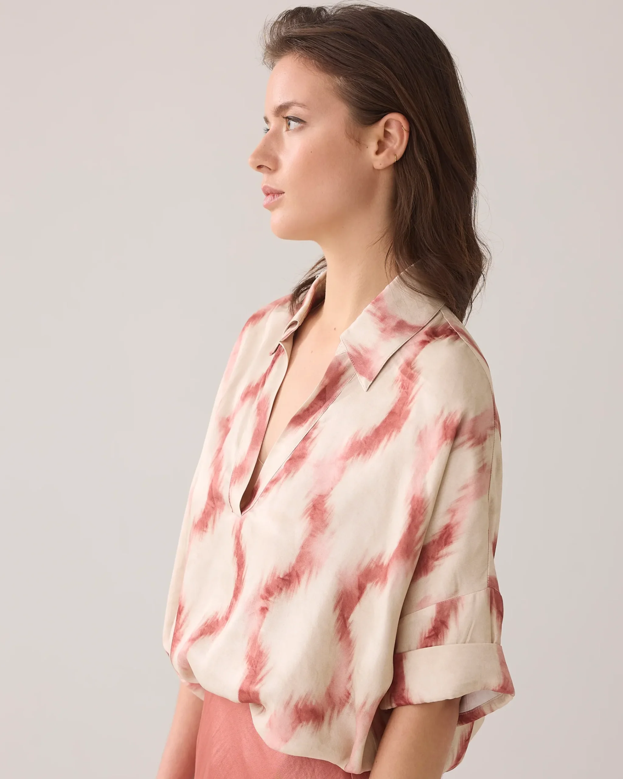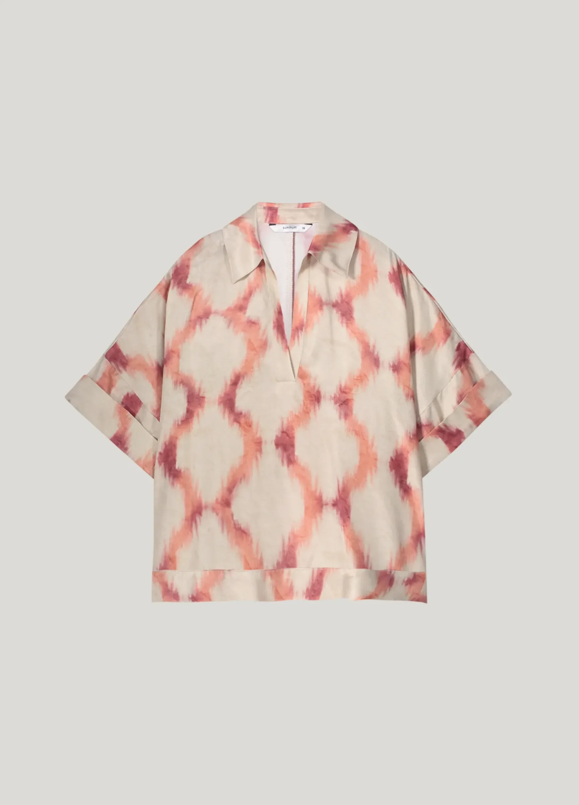 With a straight, wide fit, this top features a classic polo collar and a V-slit. The short sleeves with turn-ups give the top a casual look.
