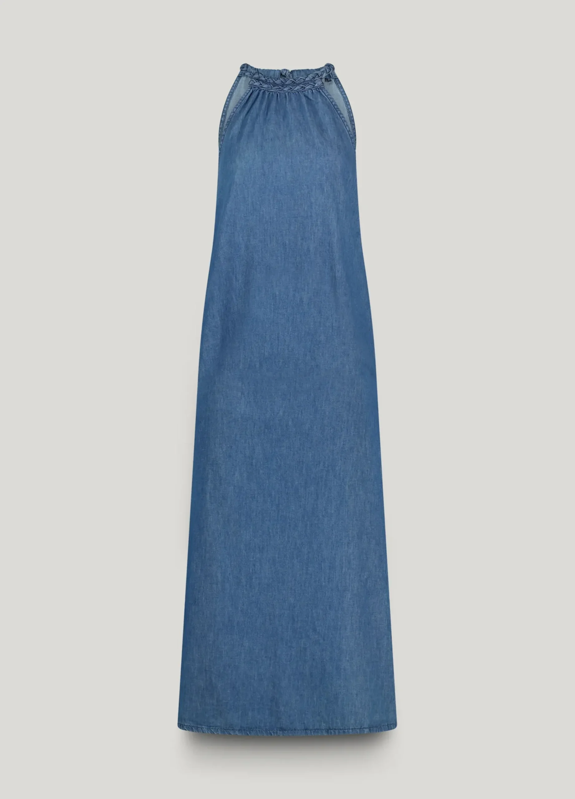 This halter dress is made of soft cotton and has a flared fit. The dress has a striking, adjustable button closure made of braided denim and hidden side pockets in the side seam.