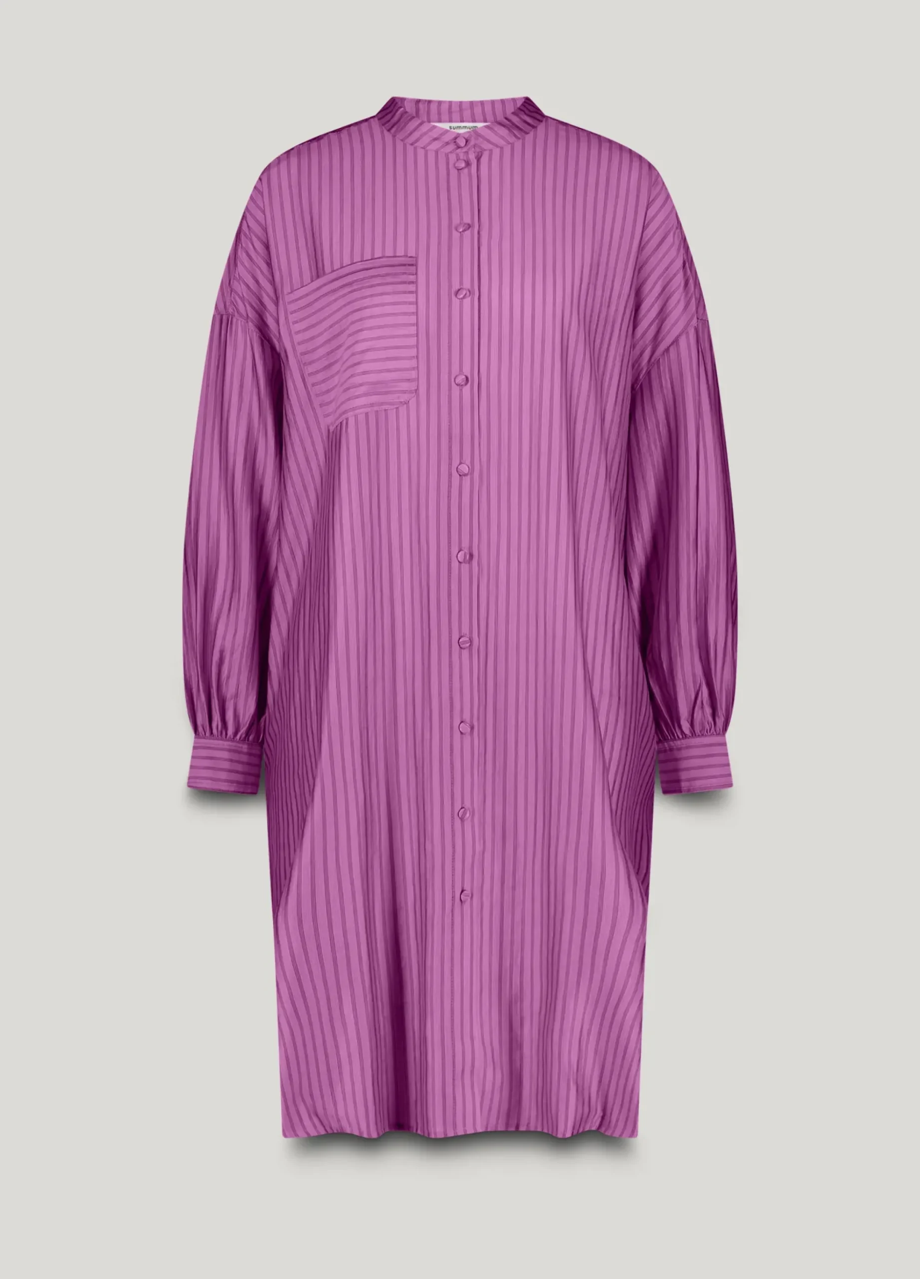This oversized shirt dress is made of a lyocell-polyamide blend with a subtly shiny finish. The dress has padded buttons, a ruched detail on the shoulder panel and a breast pocket in a twisted pattern.