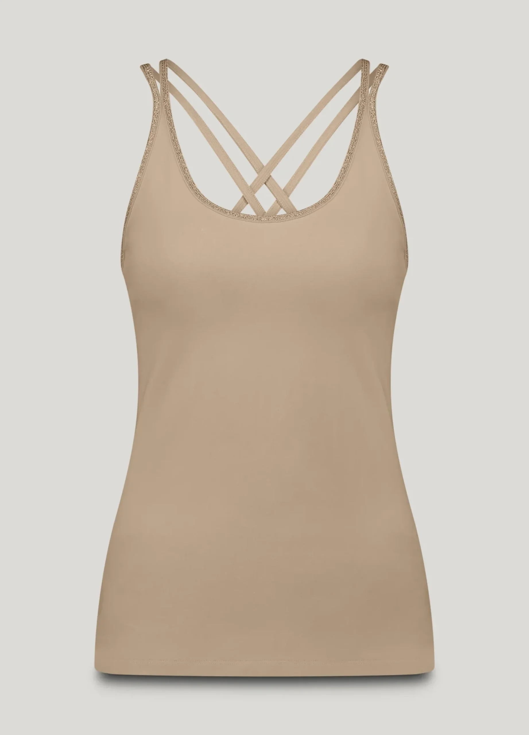 This slim-fit singlet features a feminine U-neck and braided lurex straps at the back. The top in comfortable cotton-elastane jersey is a versatile basic for any outfit.