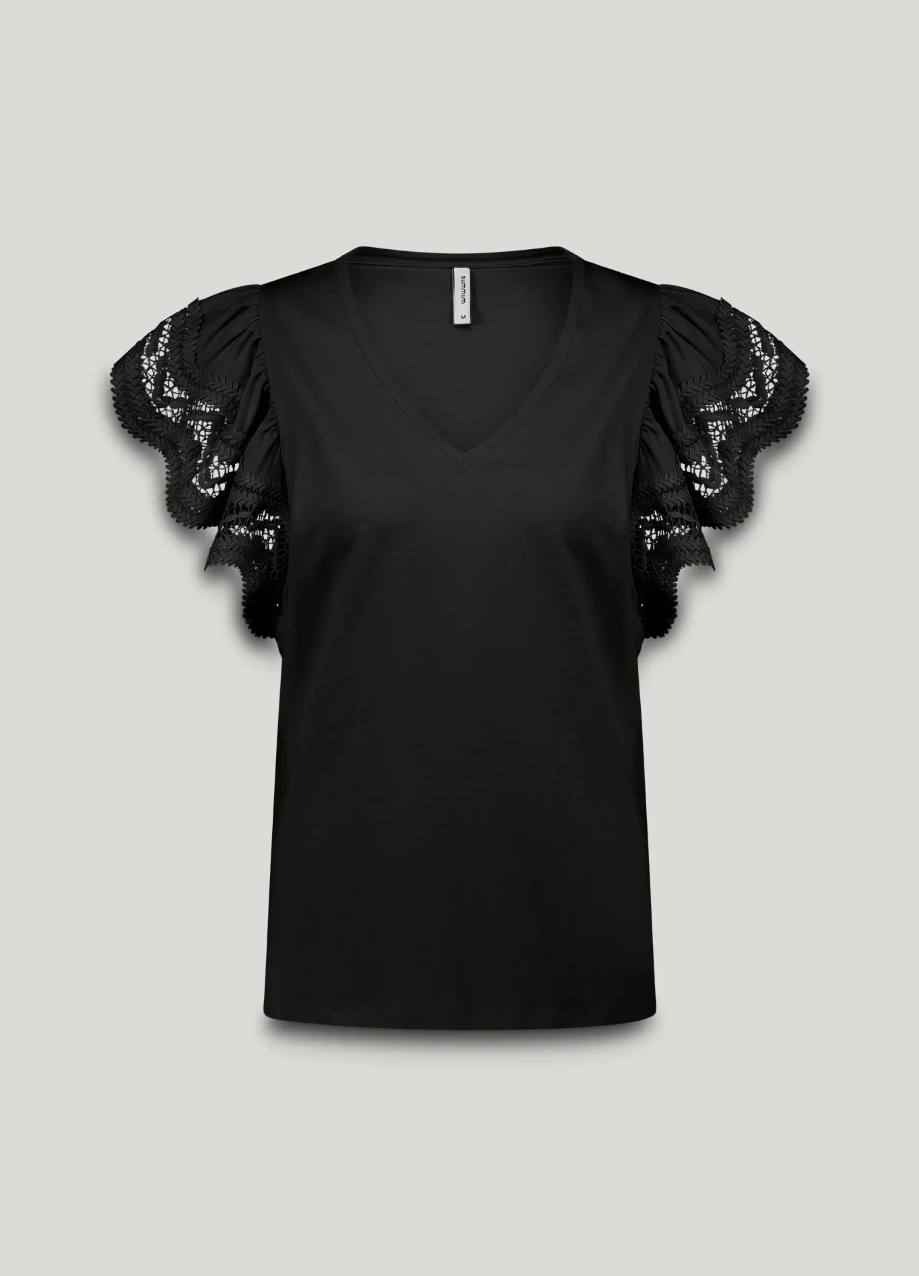 This top is made of soft jersey and has butterfly sleeves with lace. The scalloped finish and V-neckline give the top a feminine look.