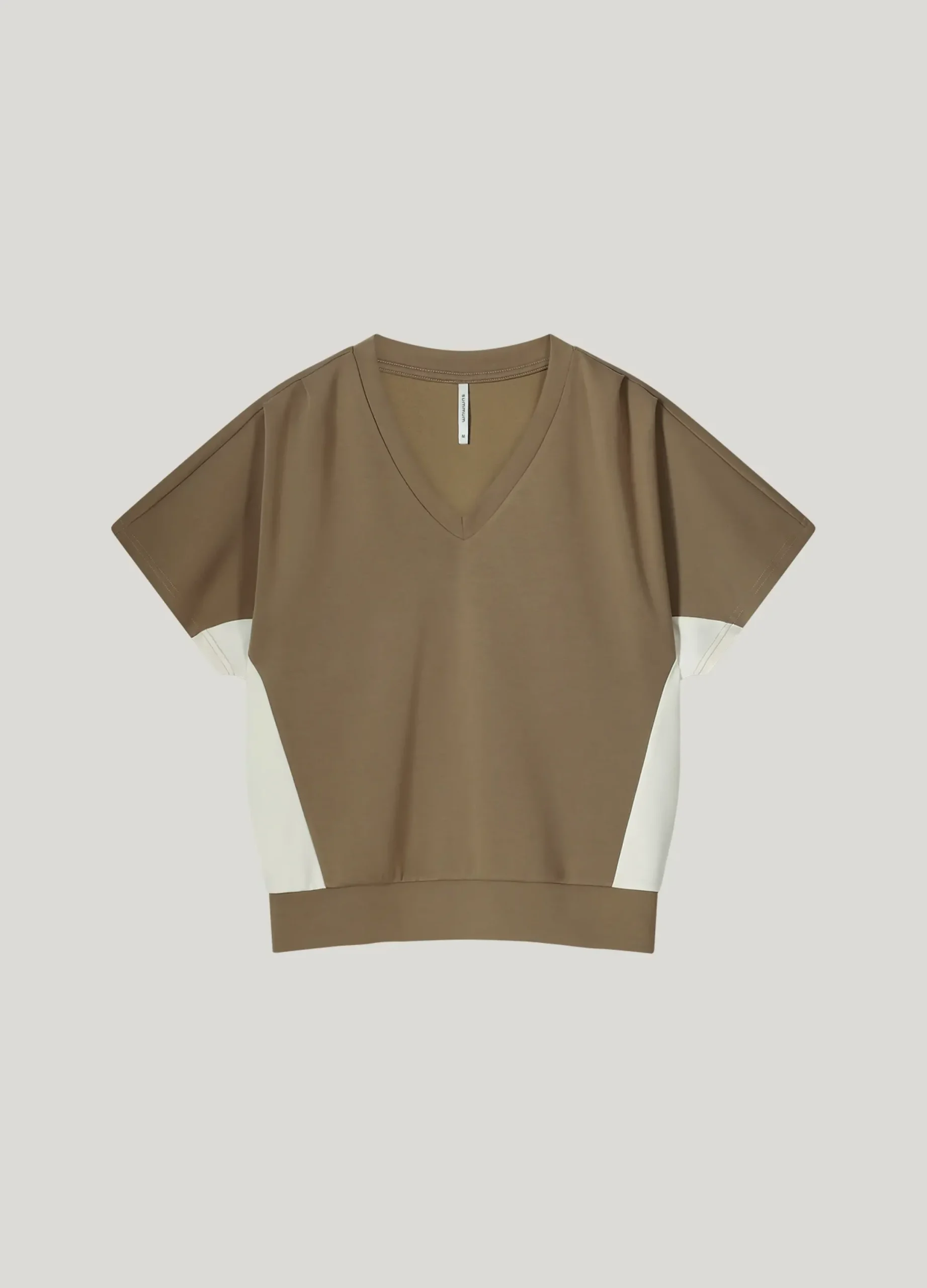 Roomy top in a soft scuba jersey fabric with short, cropped sleeves and a V-neck. The top has a contrasting stripe along the side seam.