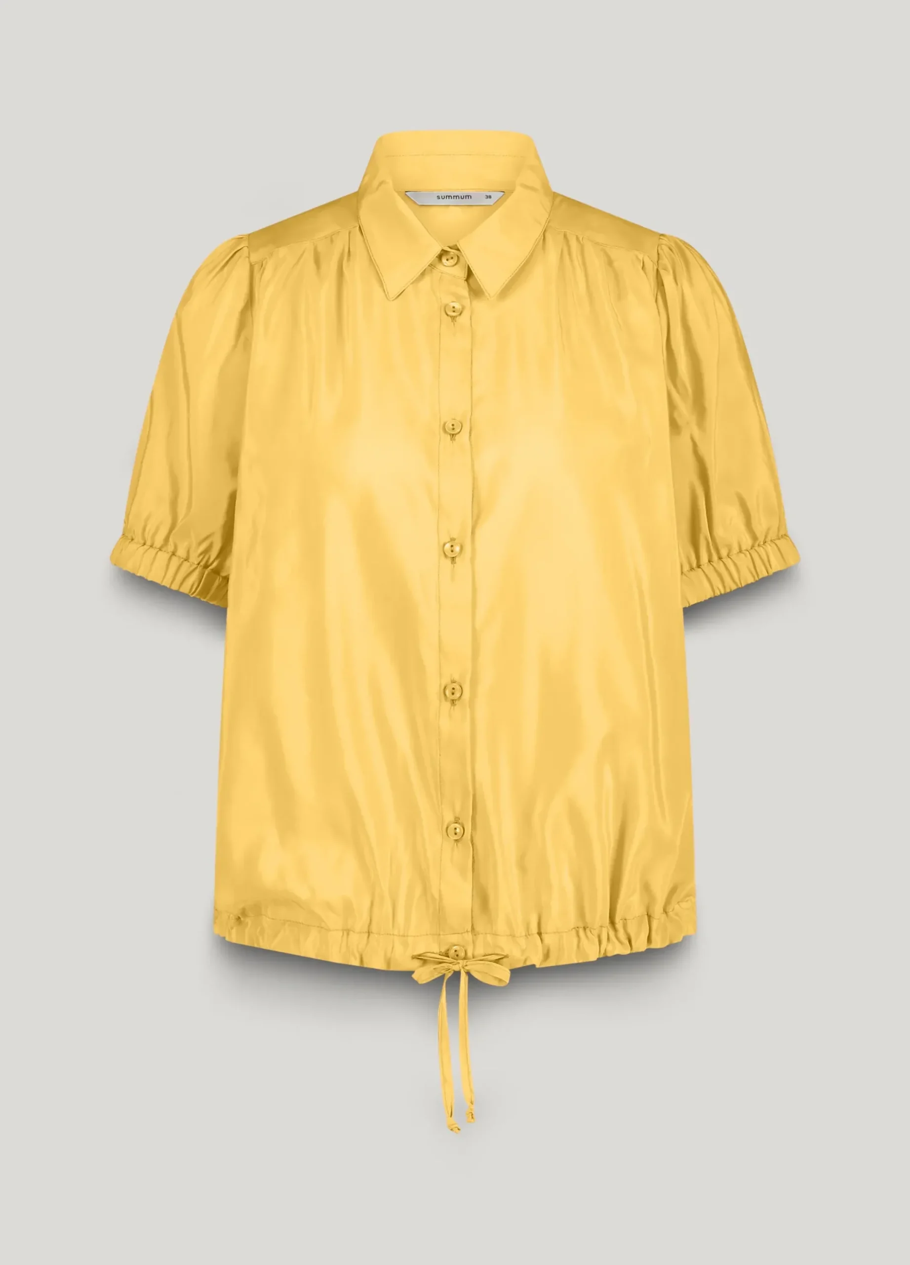 This airy blouse has short, elasticated puff sleeves and an elasticated waistband at the back. The fabric drawstring at the front lets you determine the ideal fit.