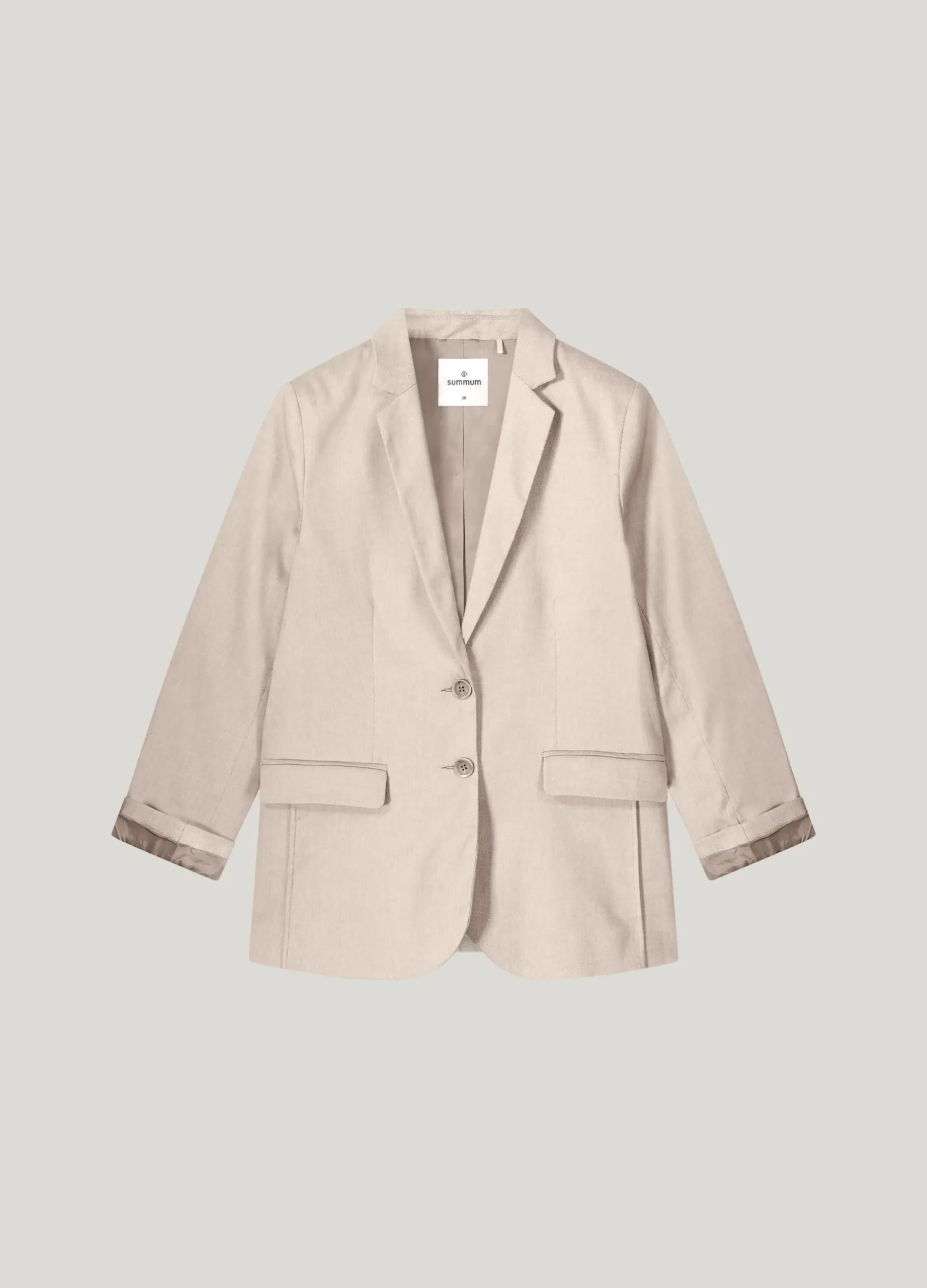 This boyfriend blazer has welt pockets with flap and a detail seam at the centre back. The striped lining at the sleeves creates a playful effect.