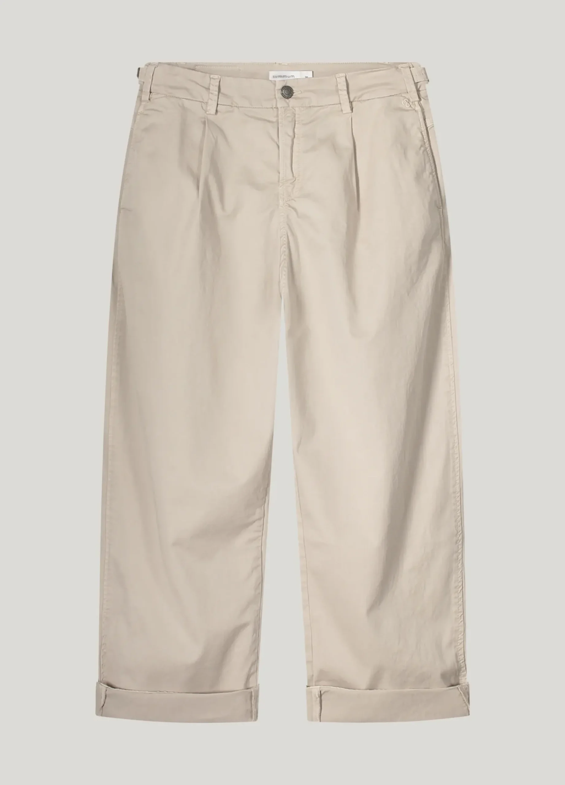 These chinos have cocoon-shaped legs and are made of a soft crispy fabric. The flap pockets with press stud, pleats in the waistband and dividing seams create a silhouette that fits nicely on the body.