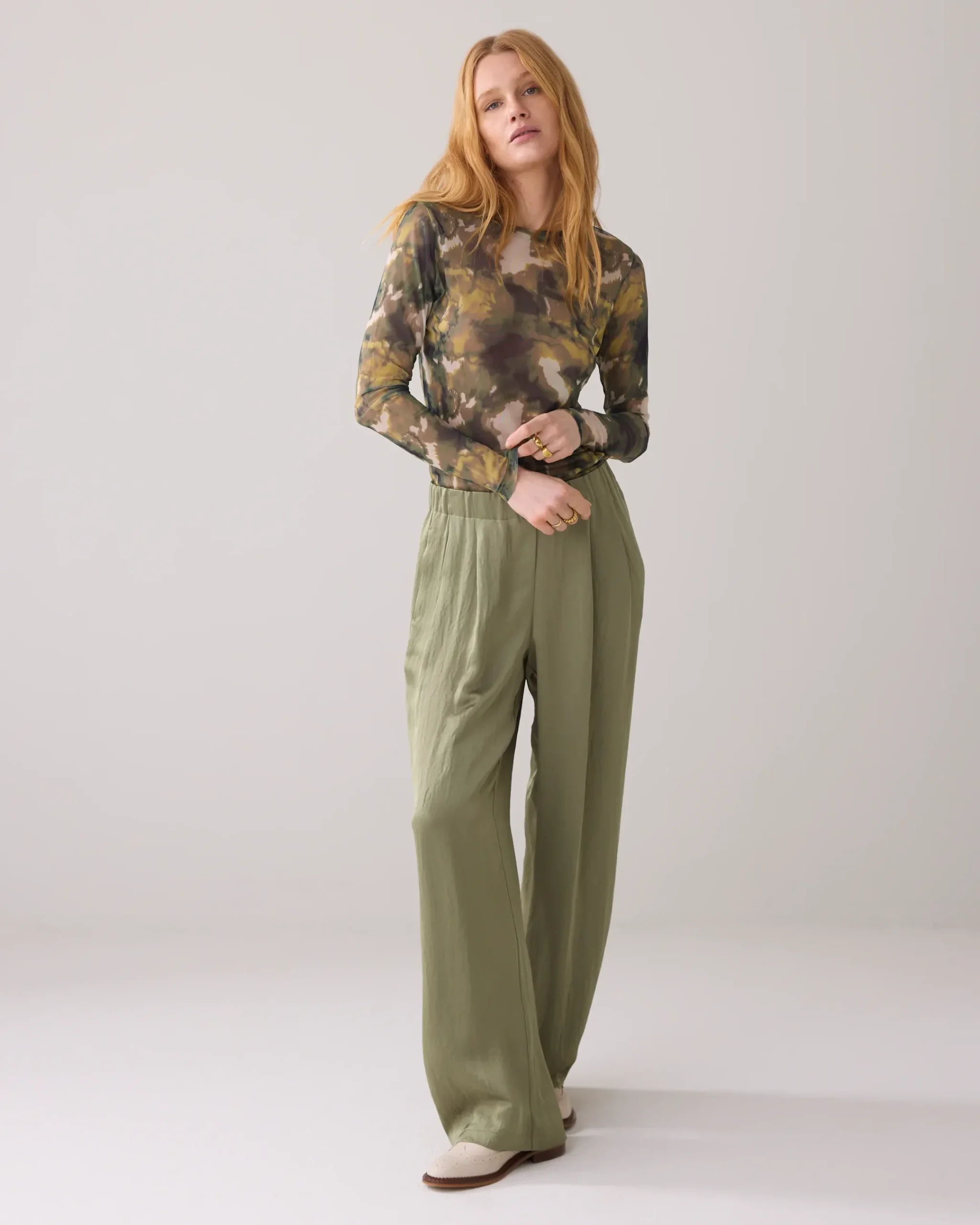 This close-fitting top is made of stretchy mesh with a watercolour camouflage print. Great to combine as a basic under a jacket or as a statement item with a camisole underneath.