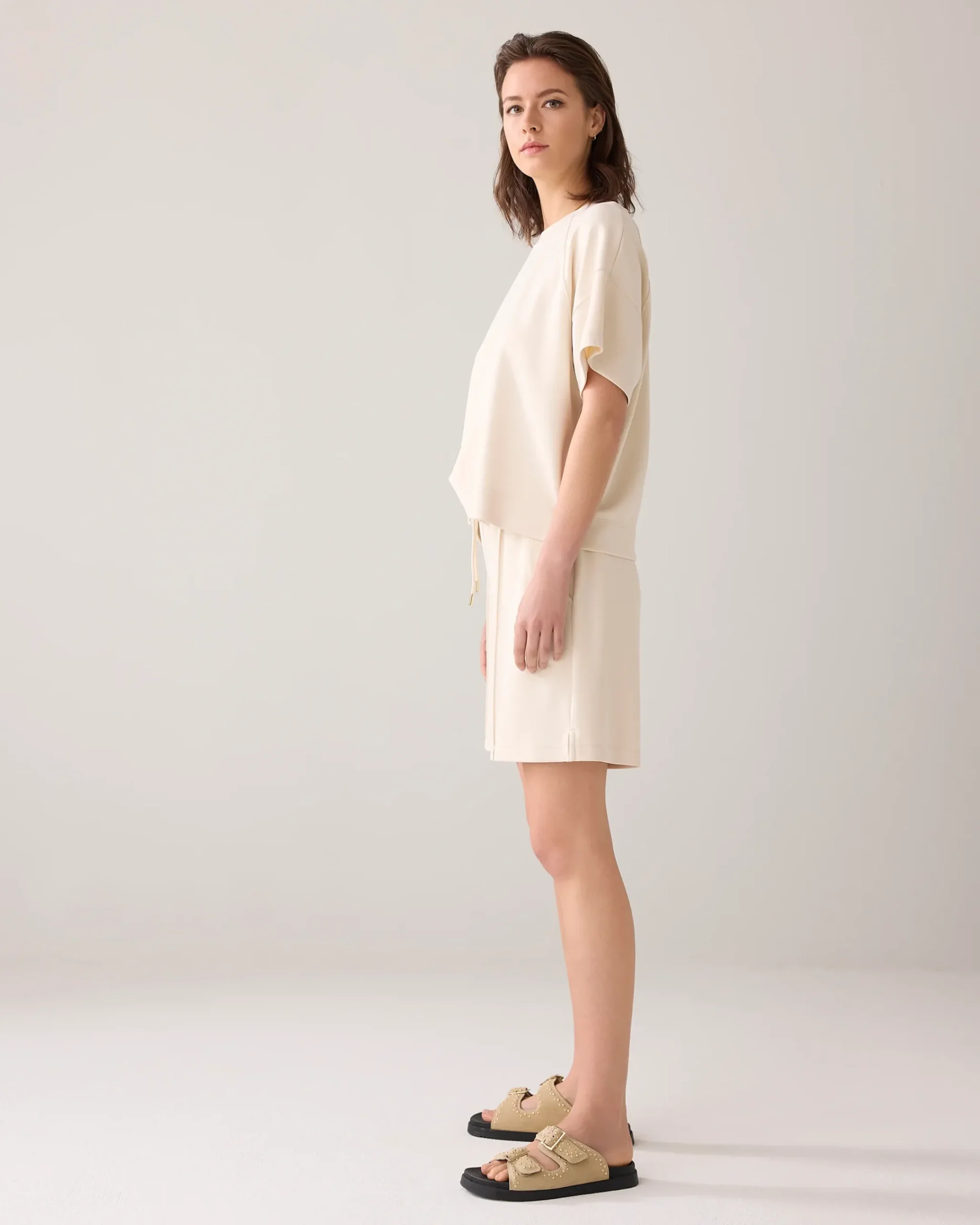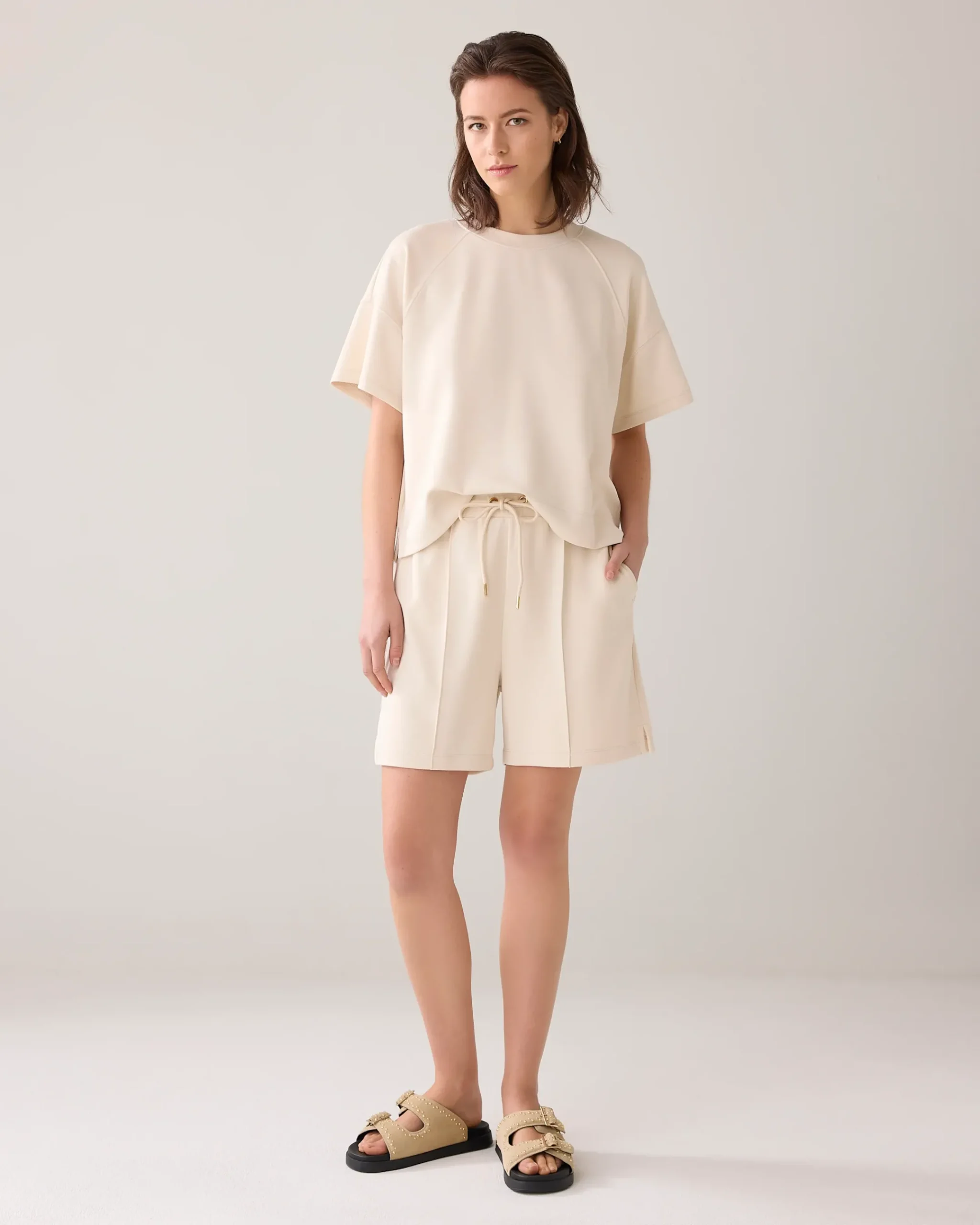 These soft and comfortable shorts have a relaxed fit and are made from washed modal scuba. The shorts have a drawstring fastening with gold details.