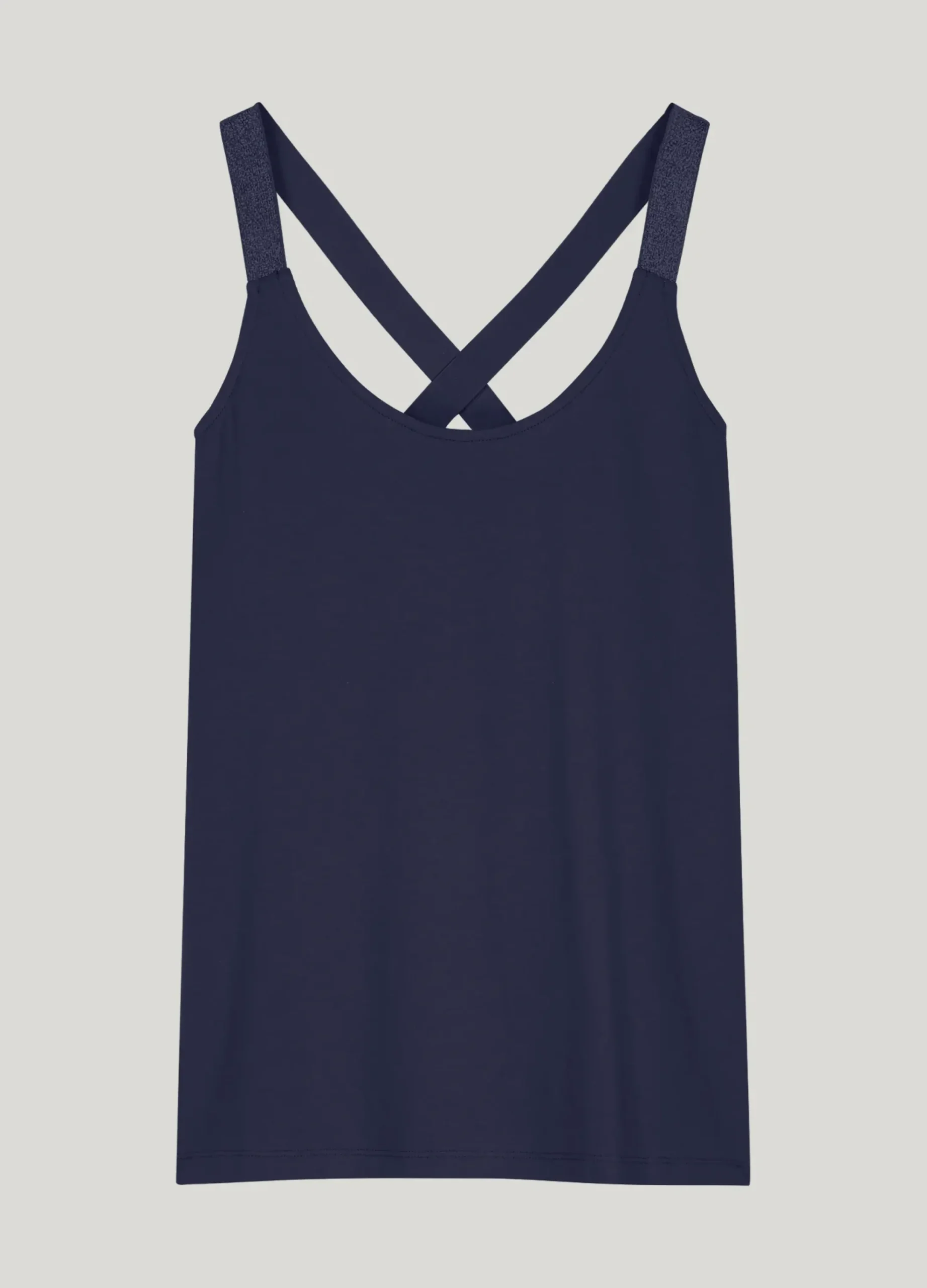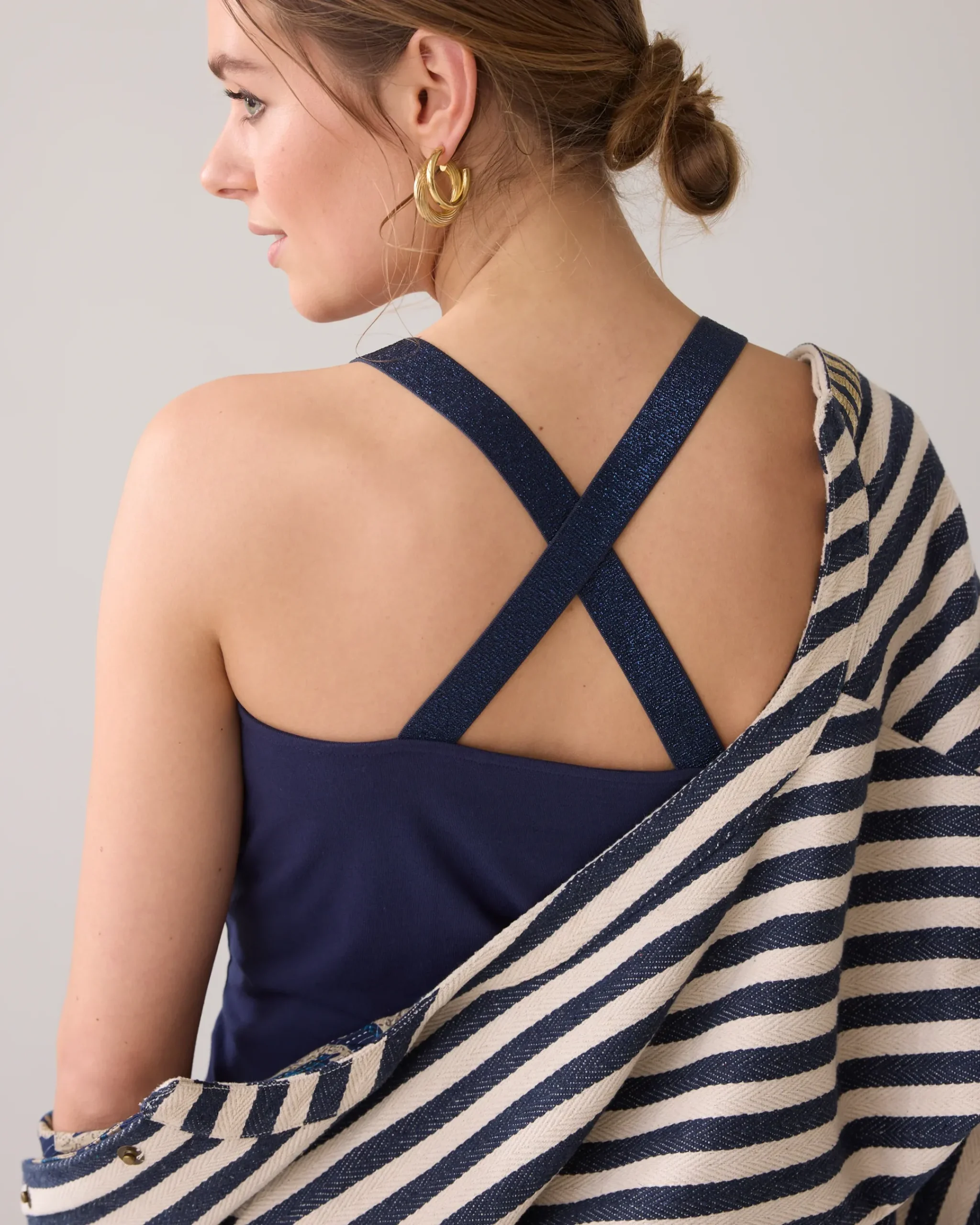 Basic singlet with a cross band at the back, made of cotton elastane jersey fabric. This slim-fit top has eye-catching glittery straps.