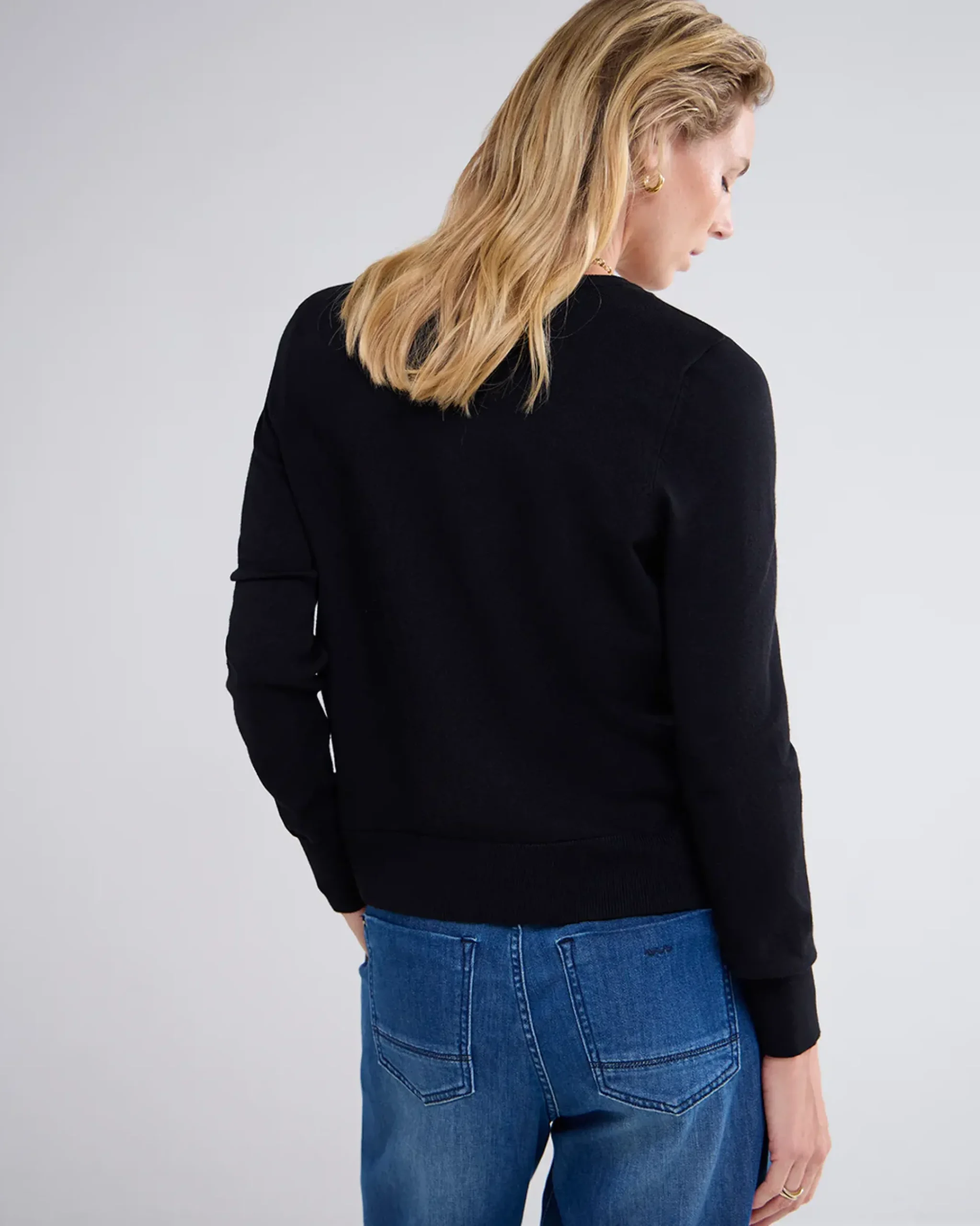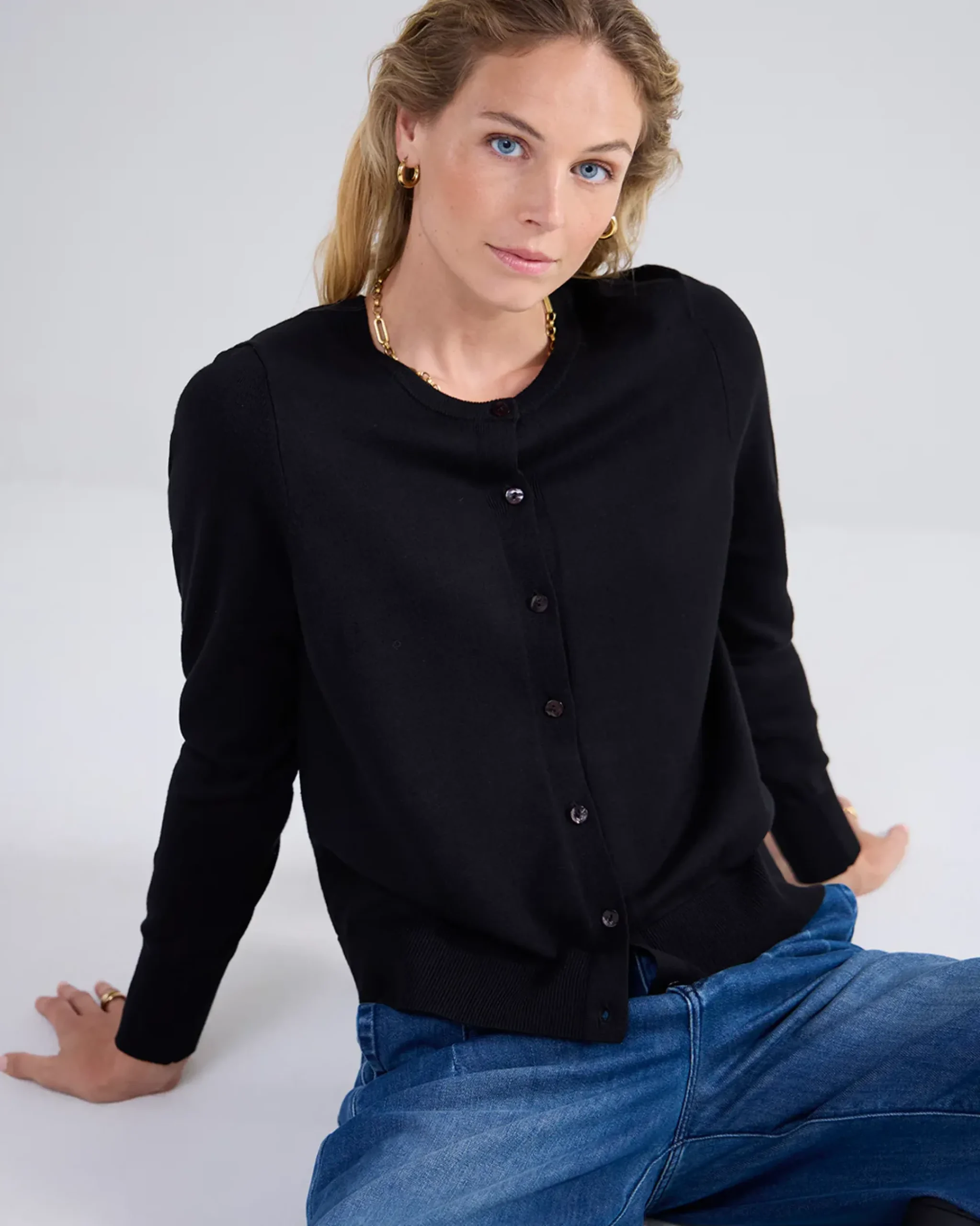 Short cardigan with a round neck and button fastening. The cardigan has a regular fit and is knitted in a compact viscose polyamide yarn.