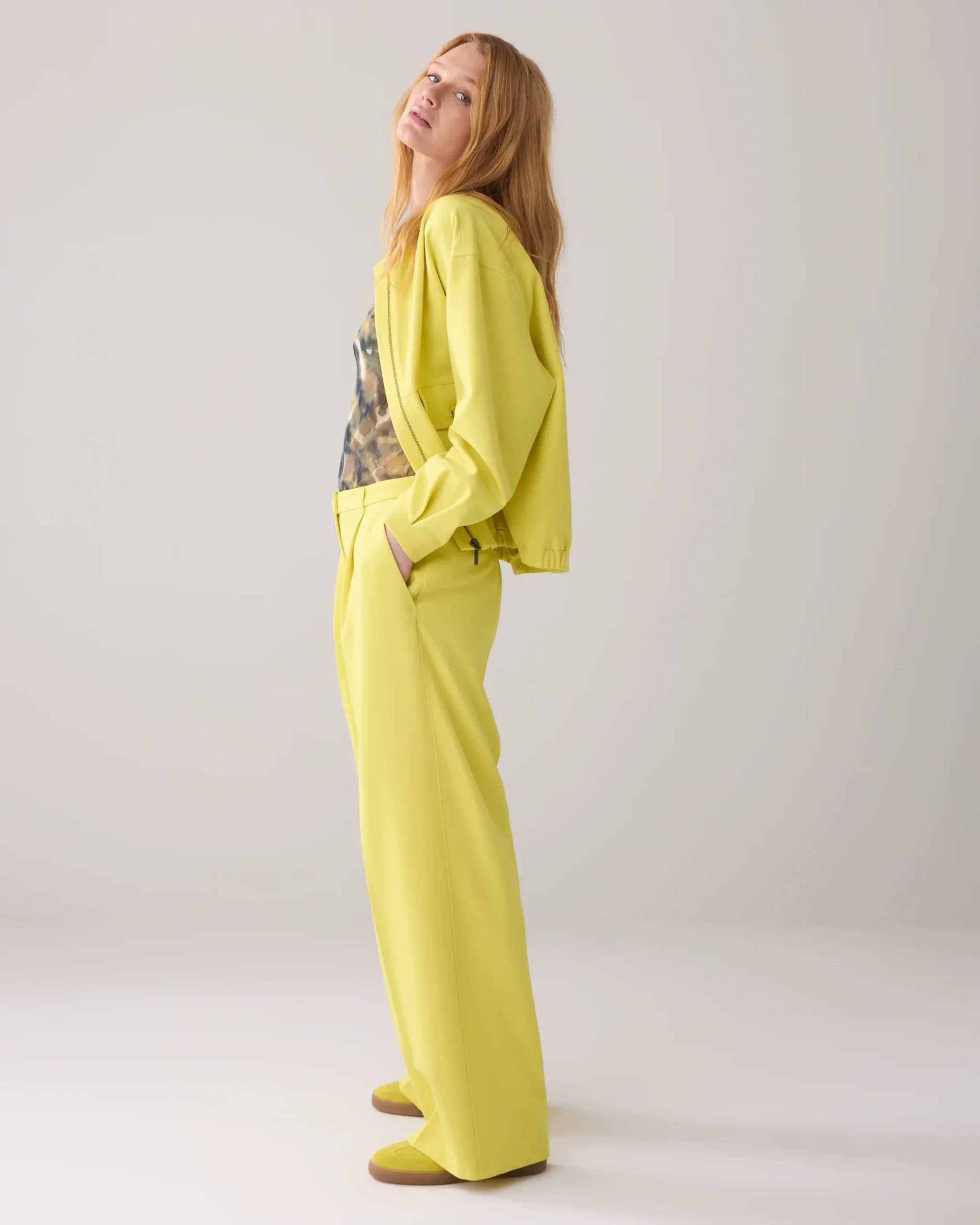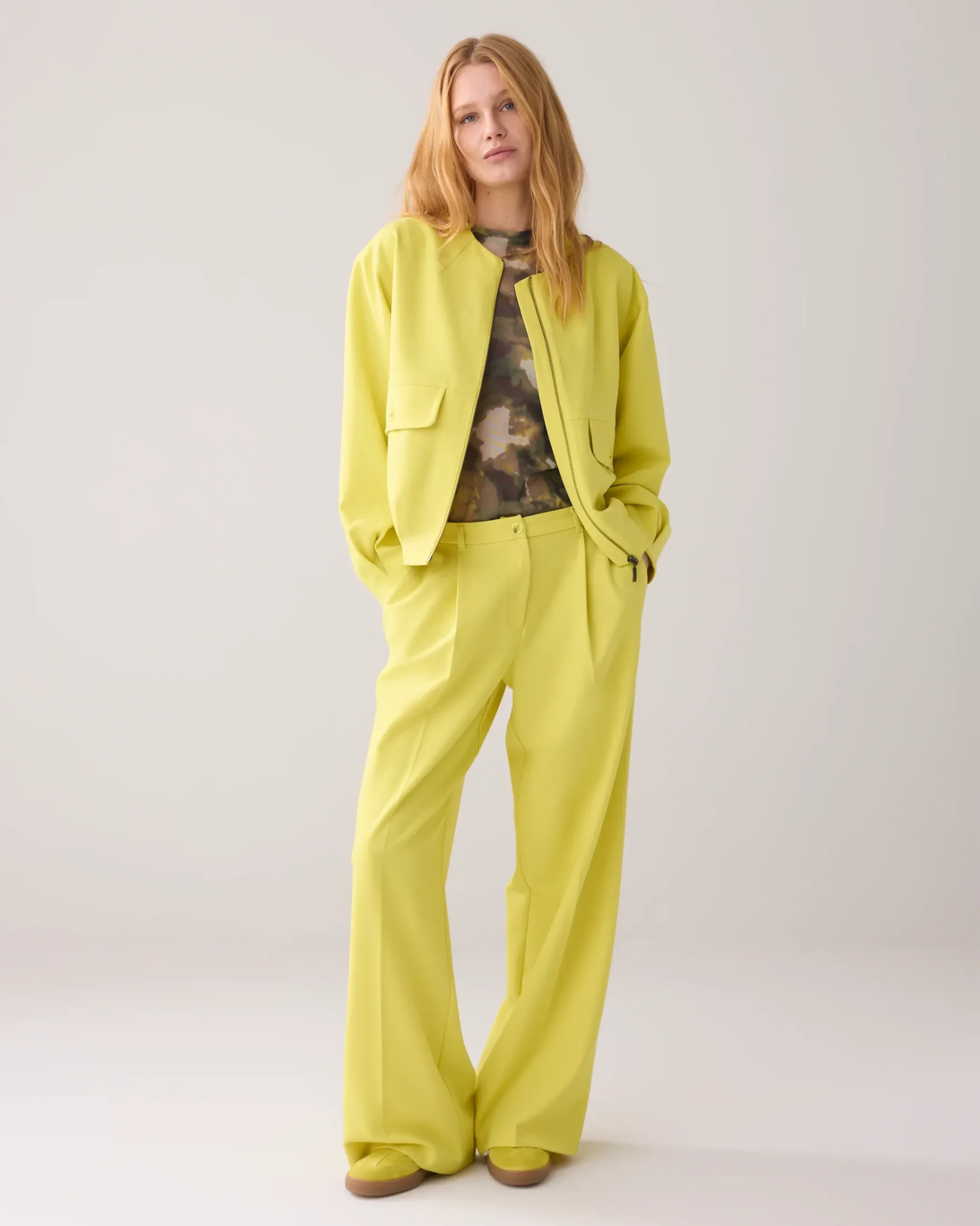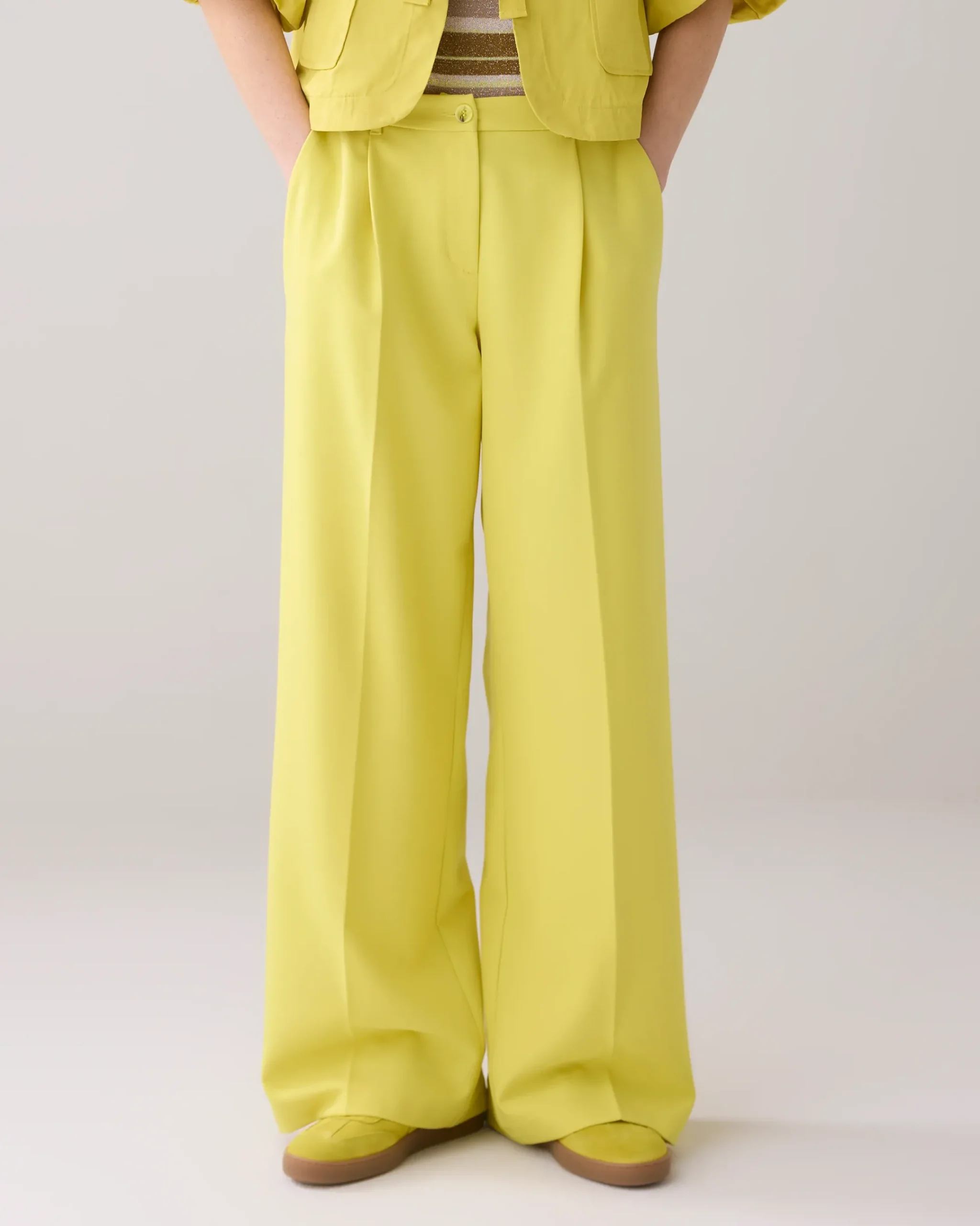 These pleated trousers have wide legs and a press crease at the front. The elasticated back waist ensures a comfortable fit.