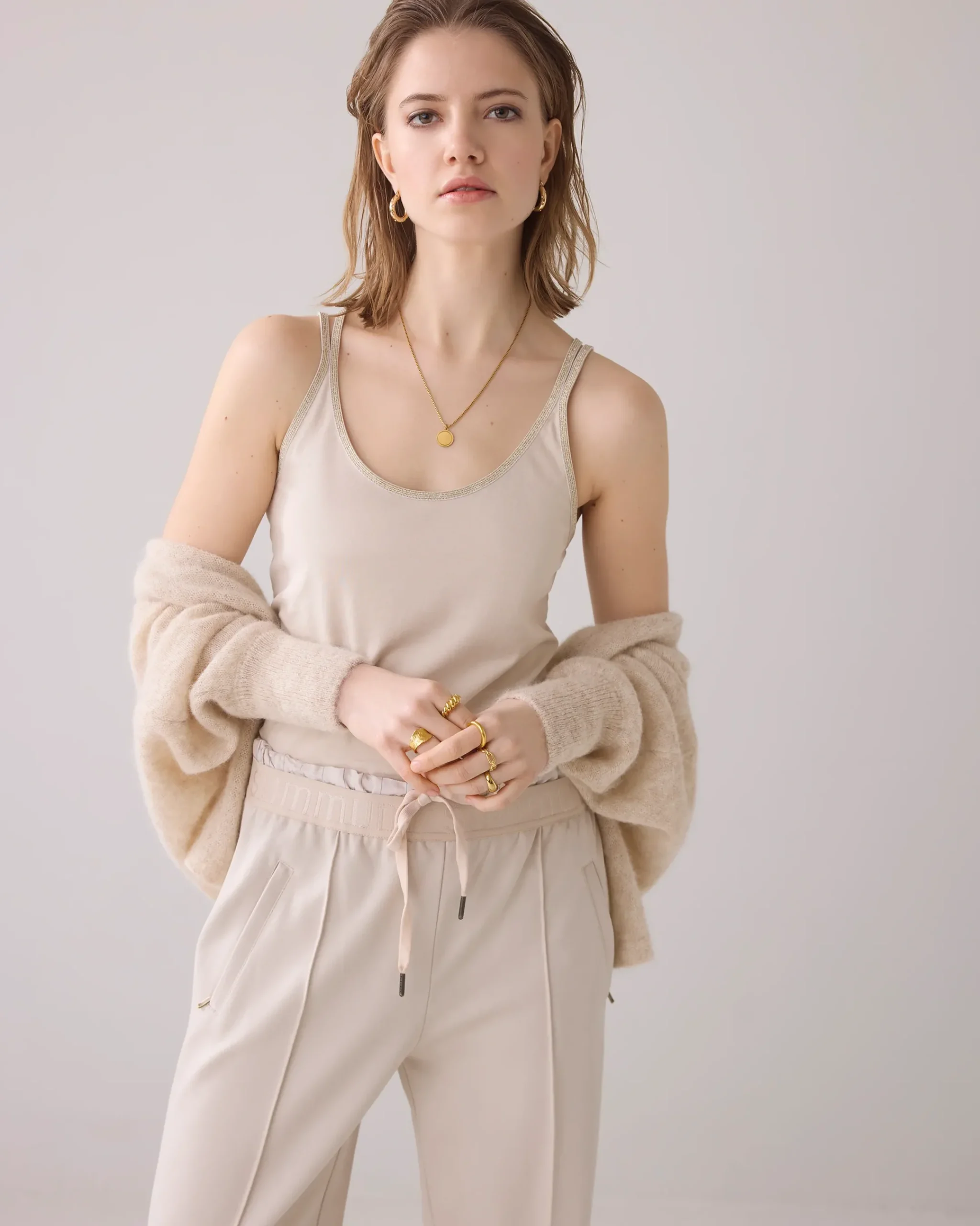 This slim-fit singlet features a feminine U-neck and braided lurex straps at the back. The top in comfortable cotton-elastane jersey is a versatile basic for any outfit.