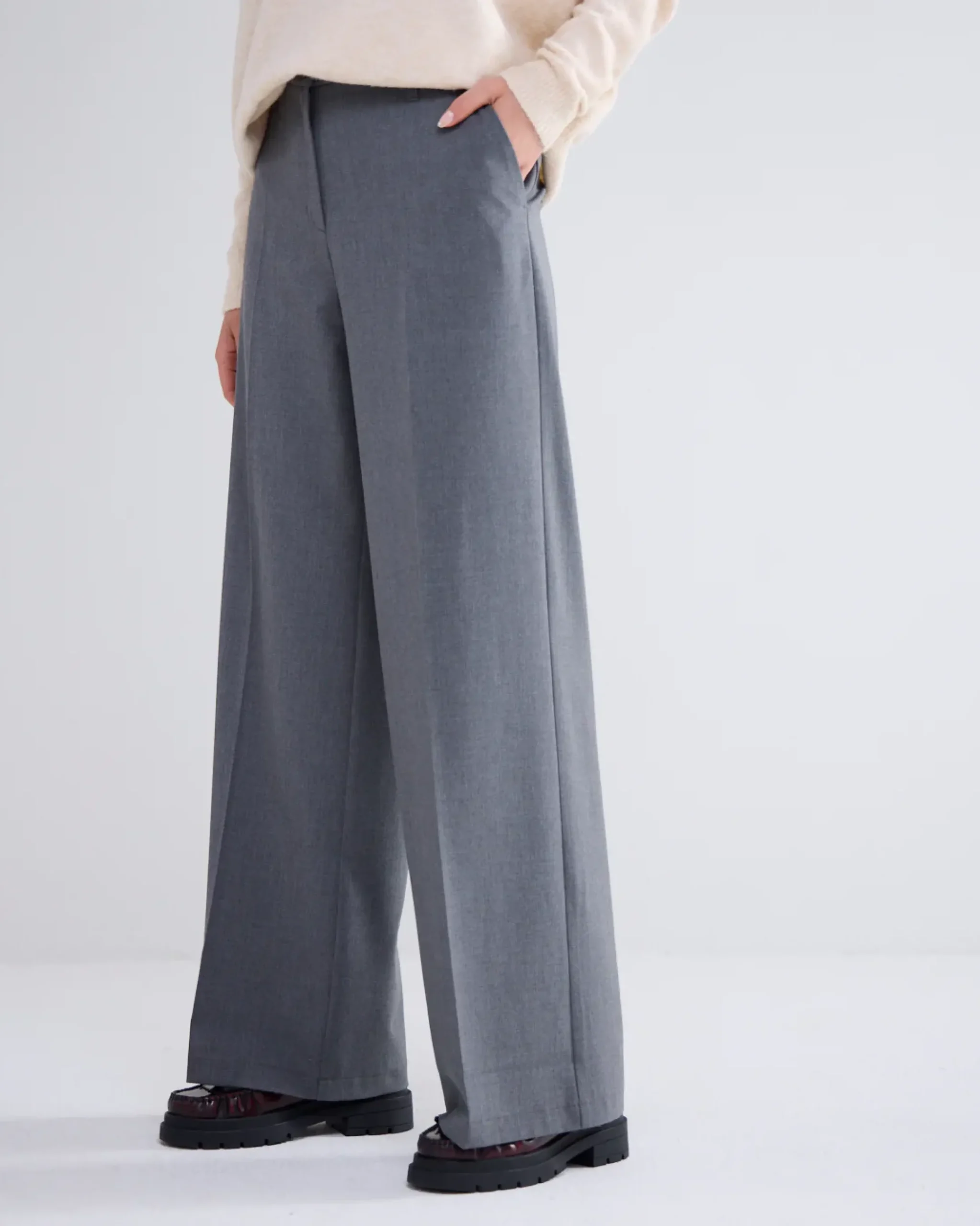 Flowy wide-leg trousers with an elasticated waist in the back. The jeans have slit pockets at the front and strip pockets at the back.