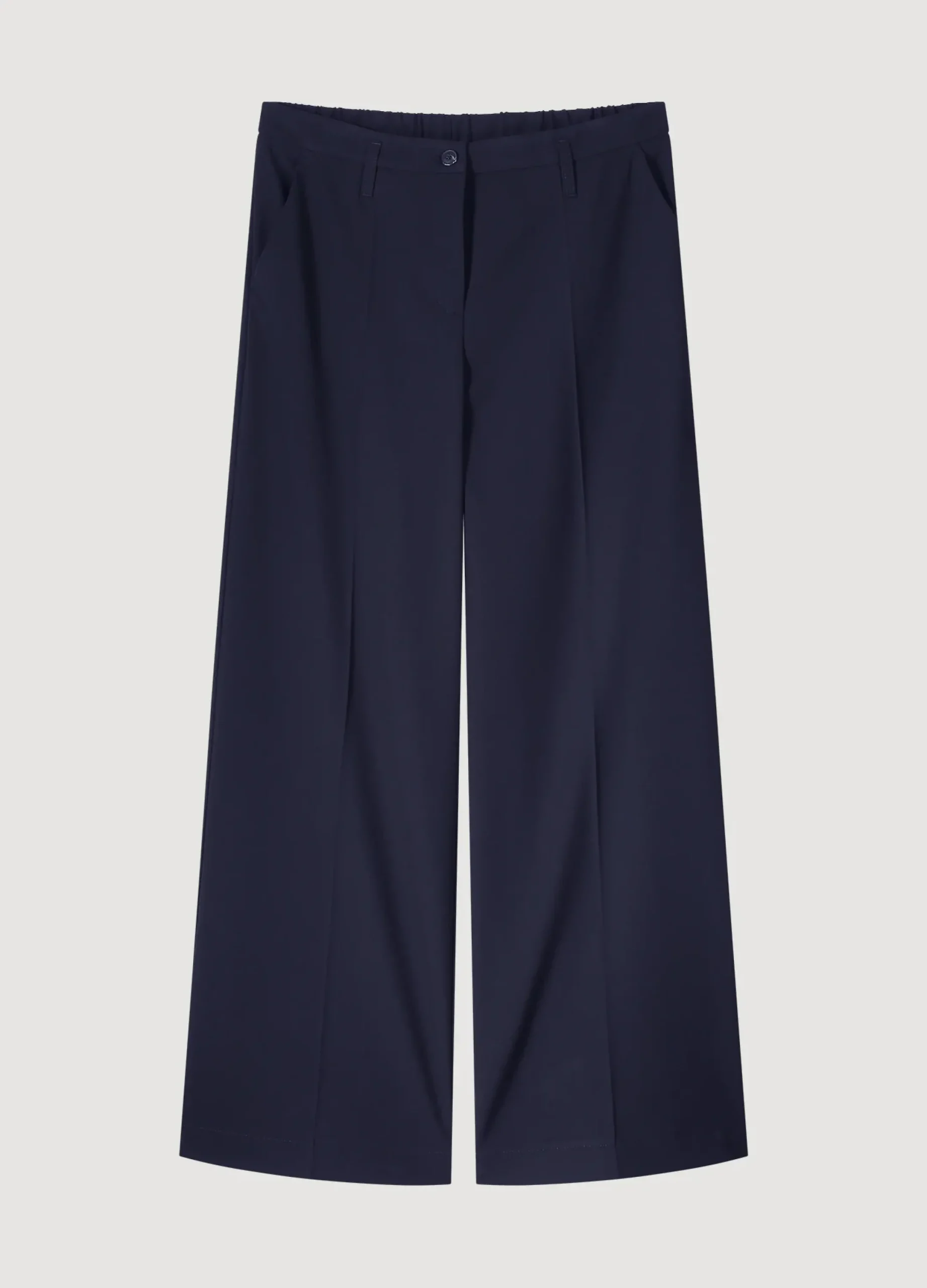 Flowy wide-leg trousers with an elasticated waist in the back. The jeans have slit pockets at the front and strip pockets at the back.