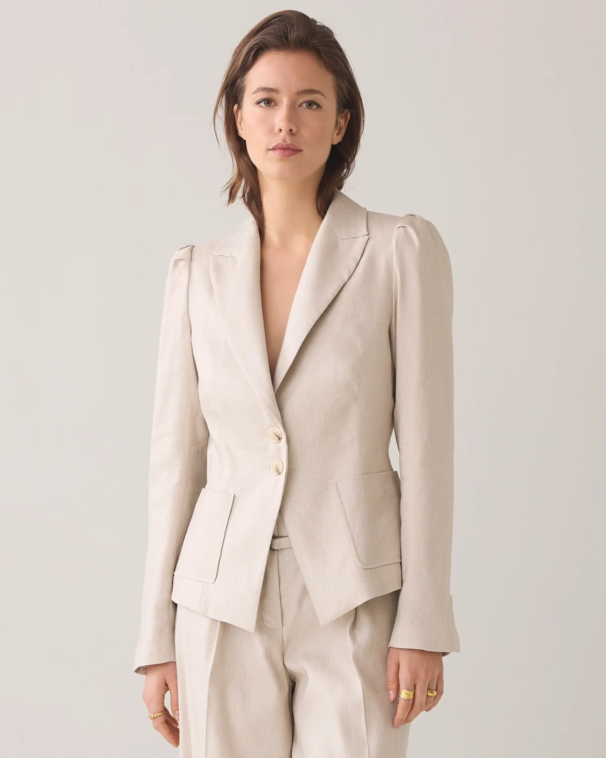 Tailored blazer in a linen blend with patch pockets. Pleats at the shoulders for a subtle puff effect and a detail seam at the back ensure a good fit.