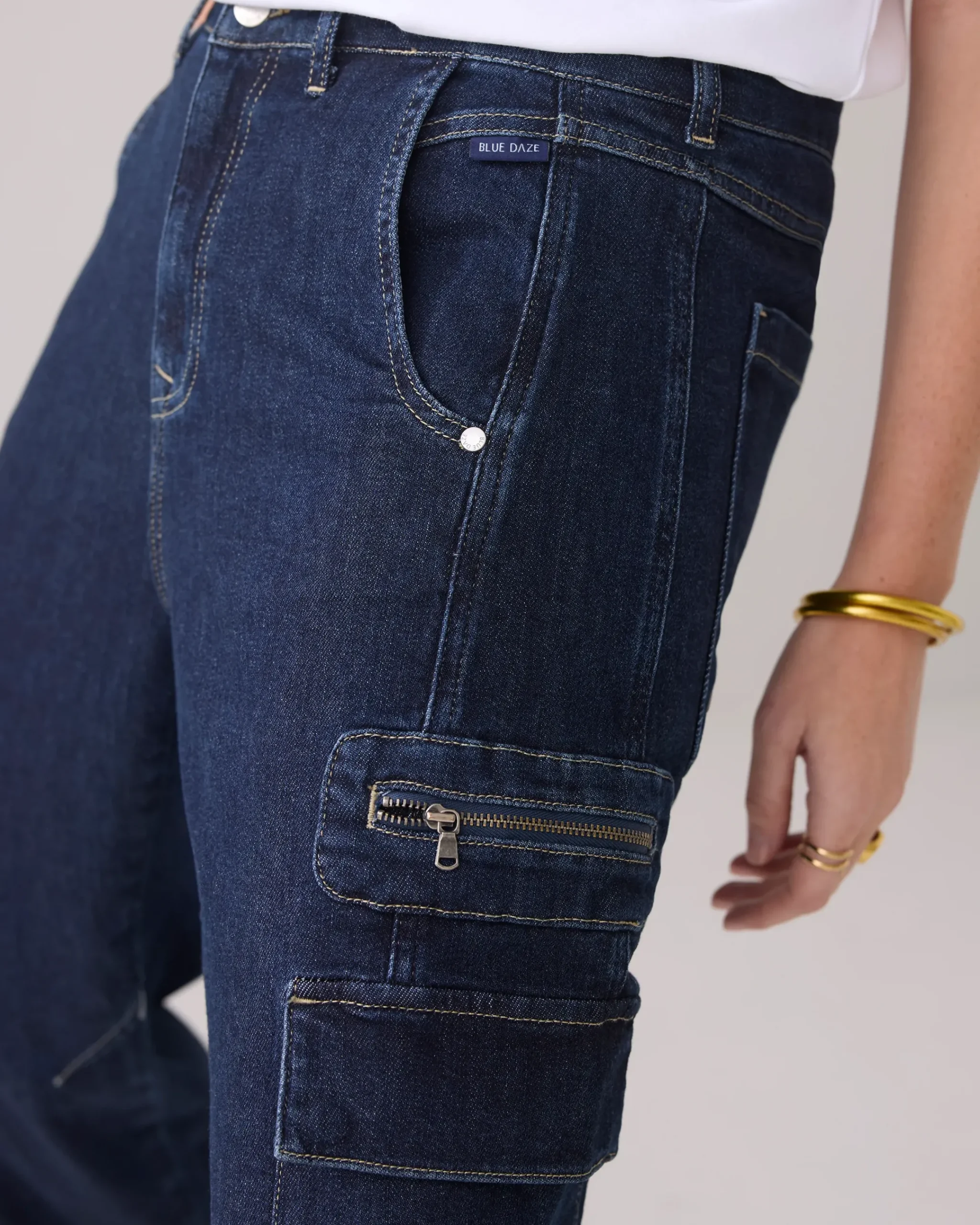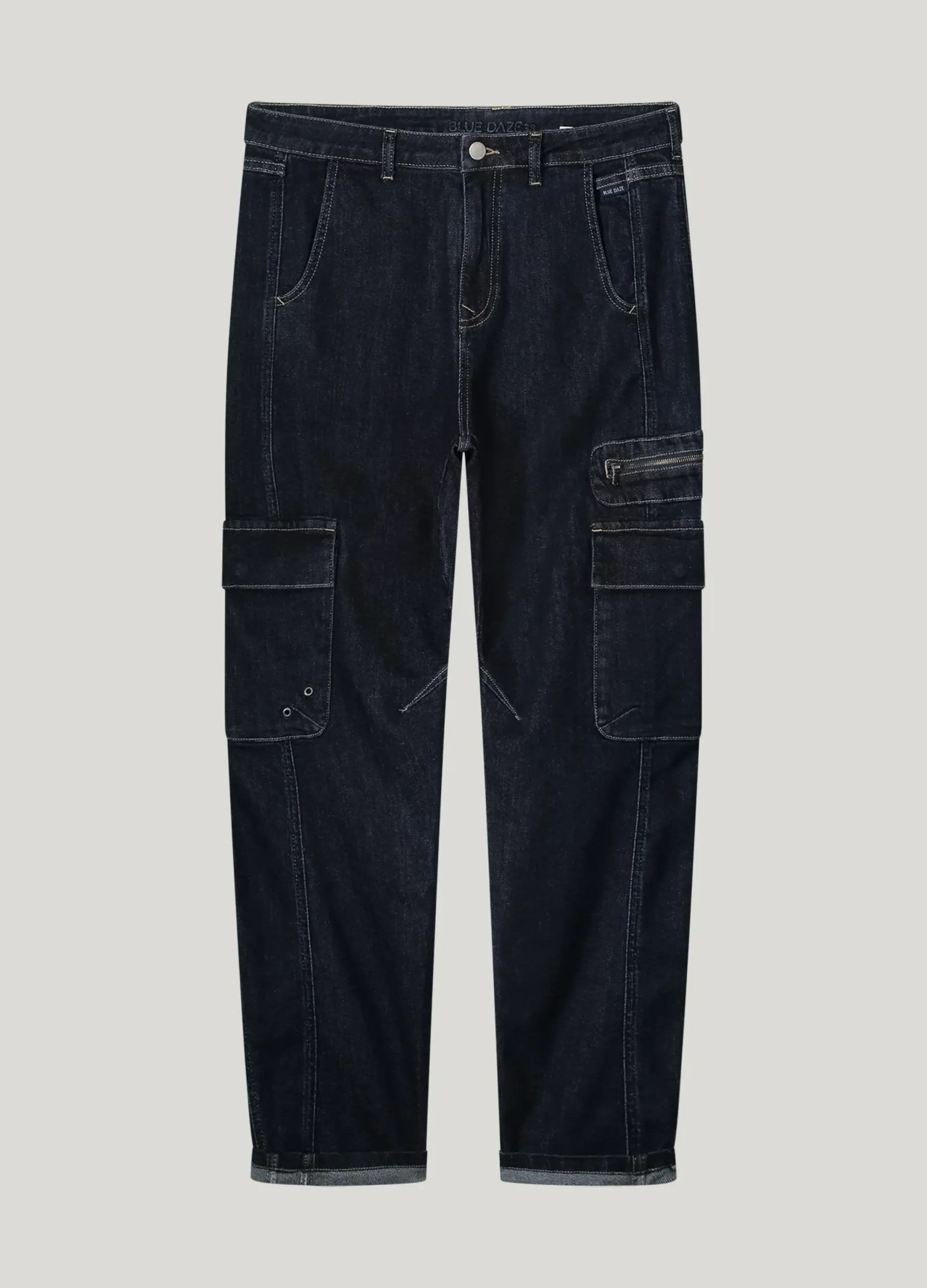 These loose-fit cargo jeans are made of comfortable stretch denim and have a low waist. The tapered legs and stitched cargo pockets add a cool look.